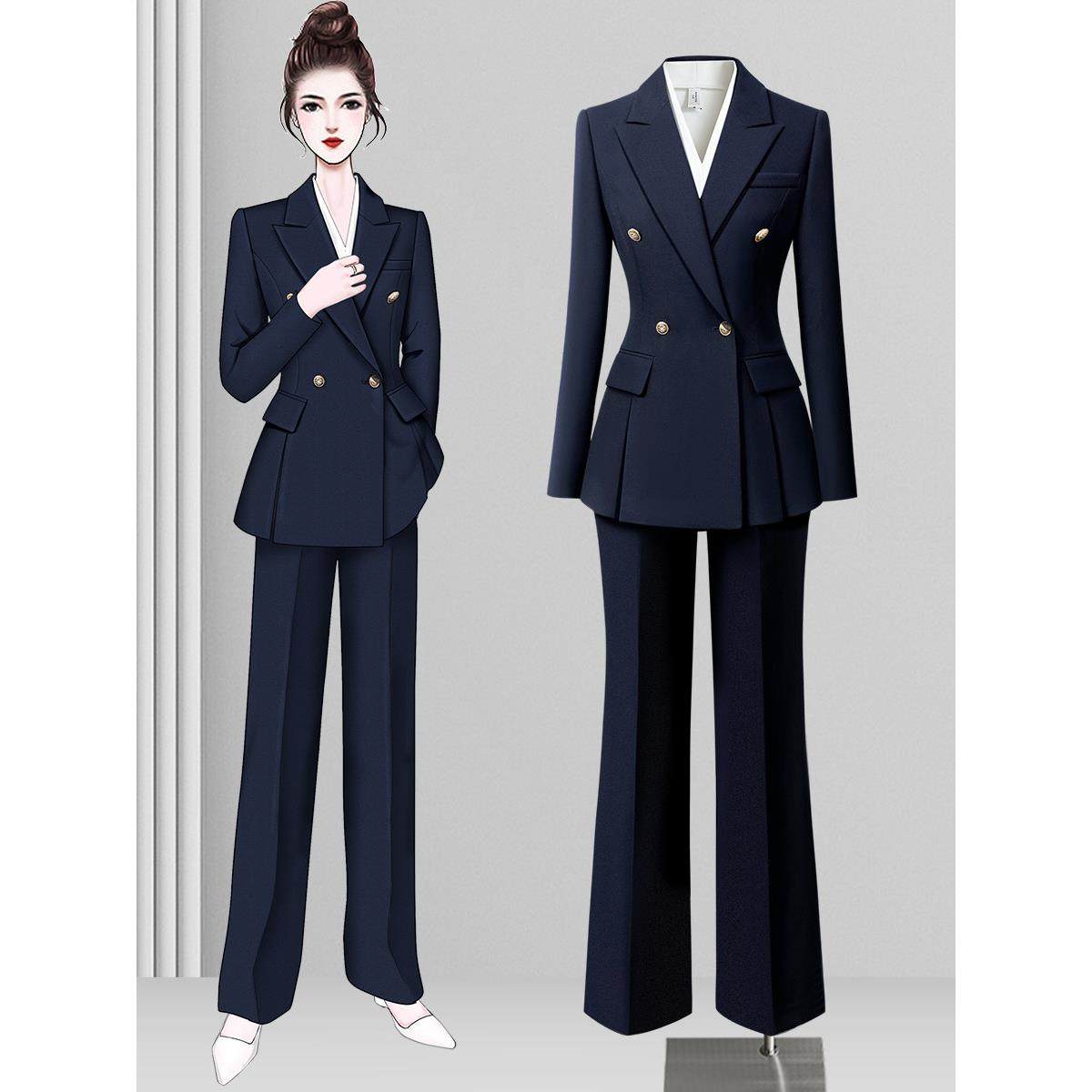 西装套装女春秋高级感职业气质收腰正装面试通勤上班珠宝店工作服