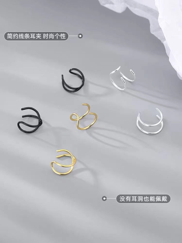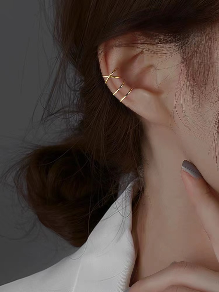 925银双线交叉耳夹2021年个性酷无耳洞耳骨夹耳环耳钩男女情侣