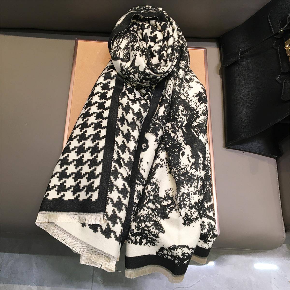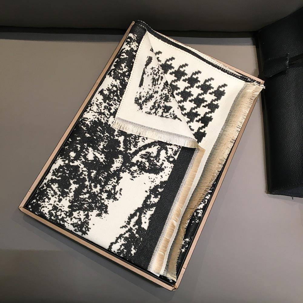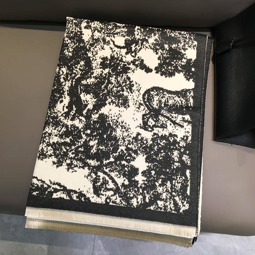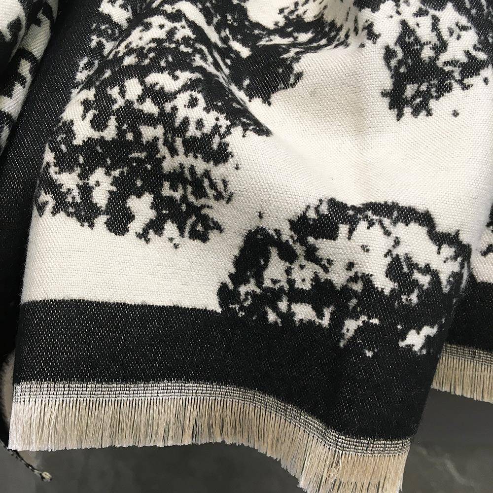 秋冬水画黑米围巾女百搭披肩两用大空调房披风斗篷保暖围1008z