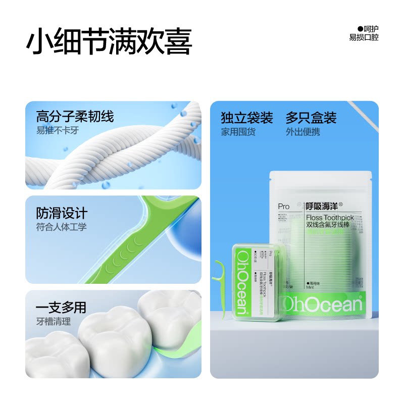 呼吸海洋正畸牙线棒专用含氟双线隐形牙套官方旗舰店正品独立包装