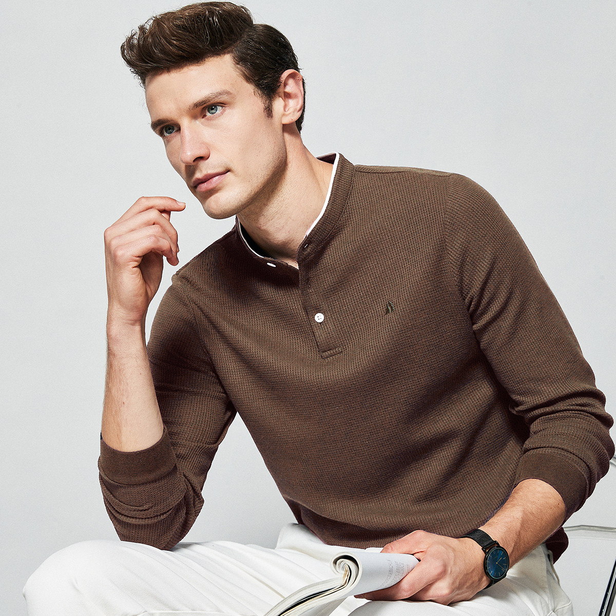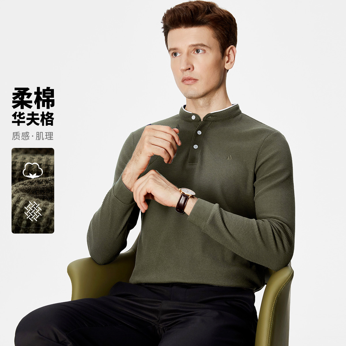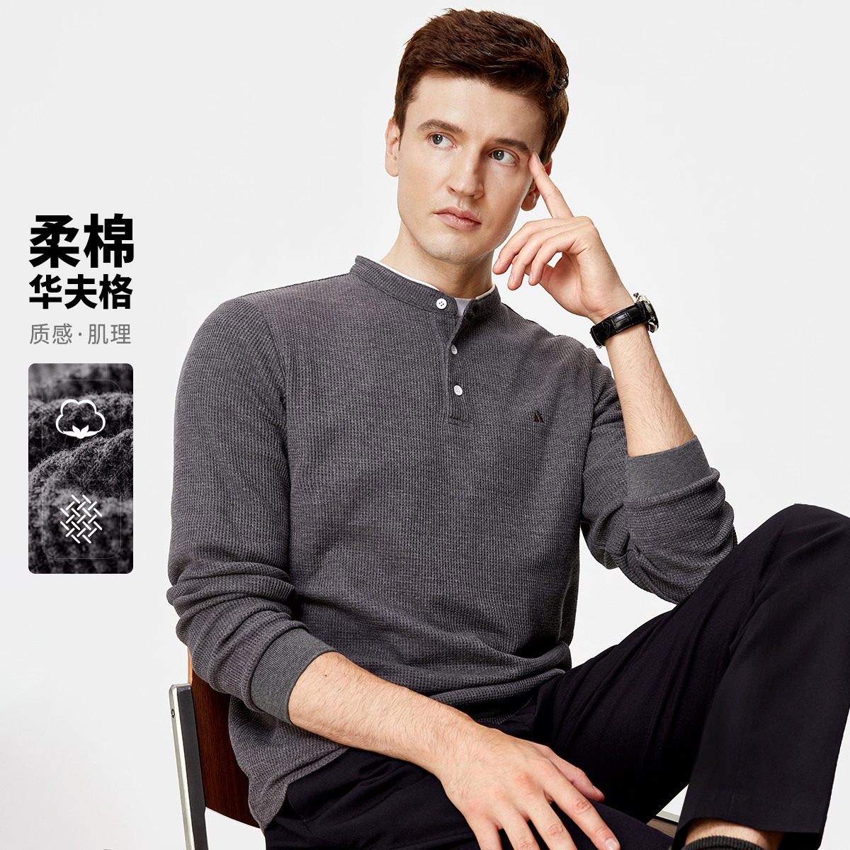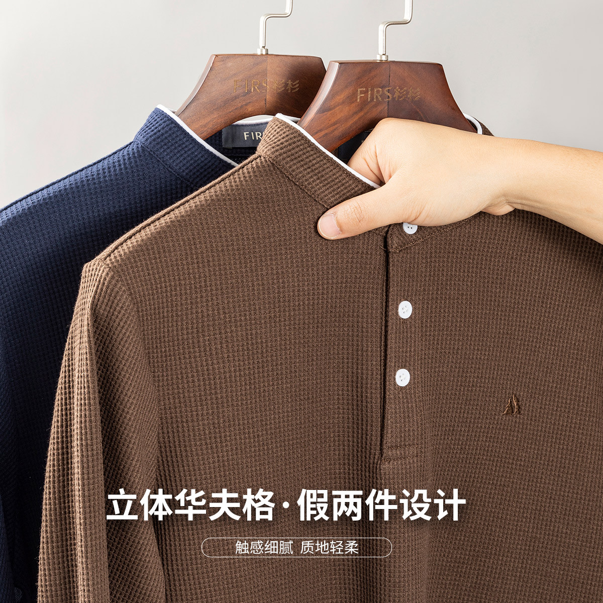 杉杉亨利领假两件华夫格肌理卫衣