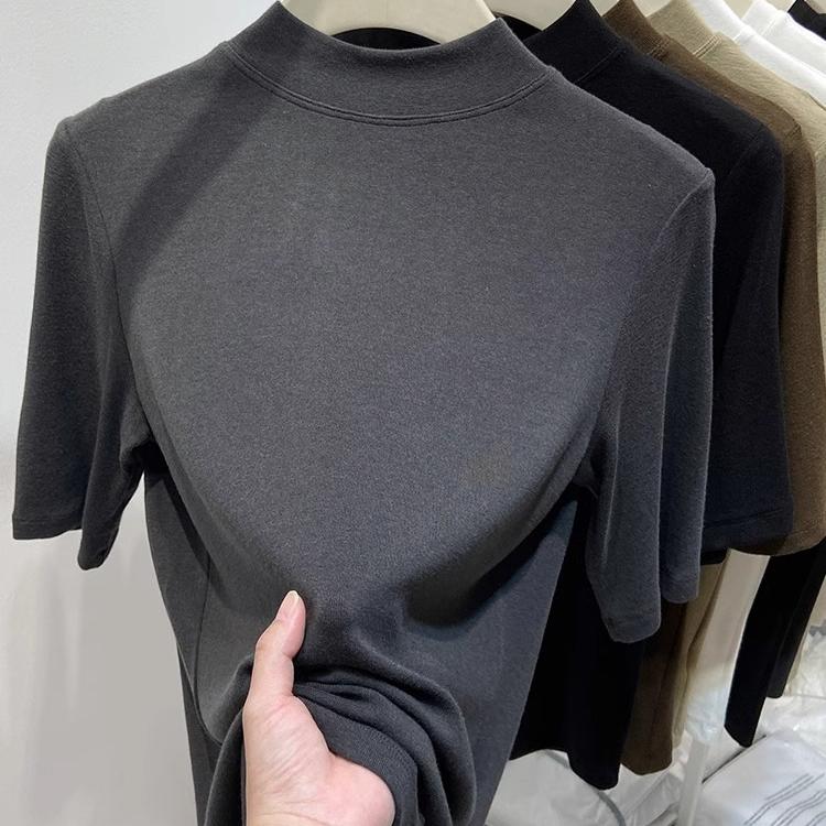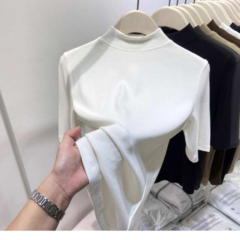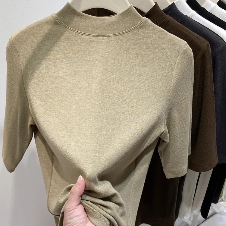 半高领五分袖T恤女2025春季新款修身显瘦内搭打底衫中袖t软糯上衣