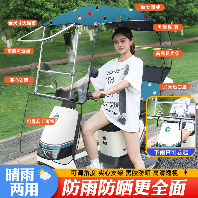新型电动车雨棚新款可折叠收缩蓬电瓶摩托车防晒防雨挡风罩遮阳伞
