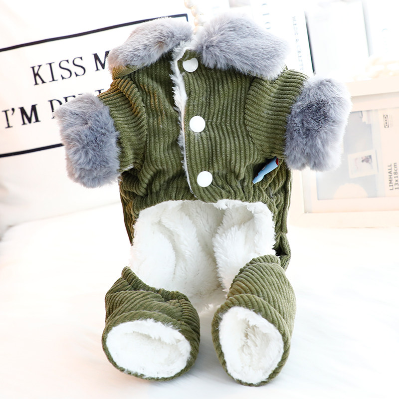 Accope狗狗方口袋灯芯绒四腿棉衣