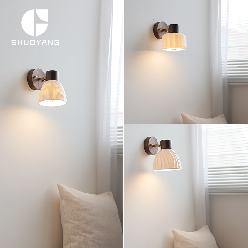 烁阳北美黑胡桃木壁灯复古设计师民宿酒店橱窗装饰卧室床头小壁灯
