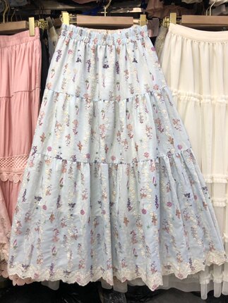 蕾丝花边蛋糕裙刺绣碎花A字半身裙春季甜美小个子裙子森女系长裙