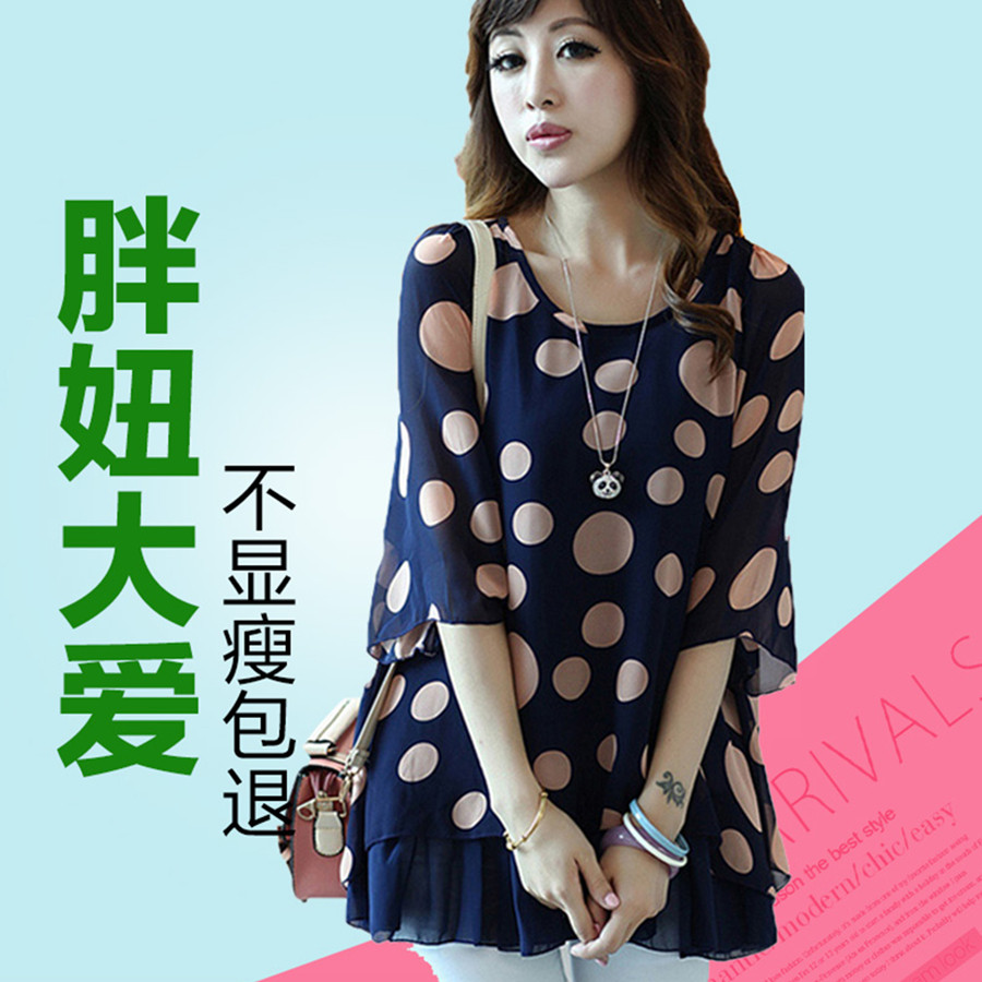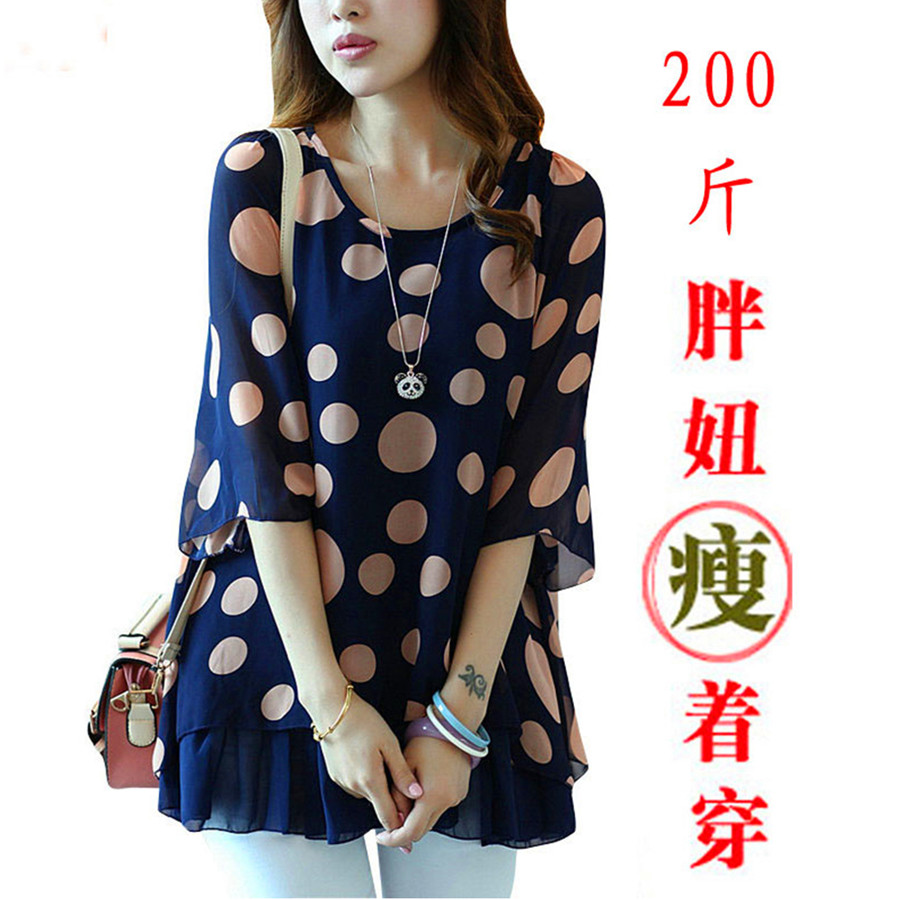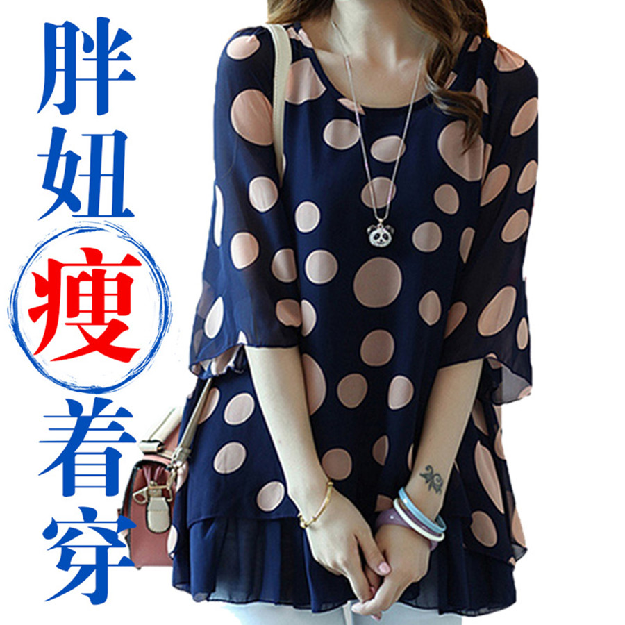 胖人雪纺衫女加肥加大码宽松遮肚子上衣胖mm显瘦中年女装t恤衫夏