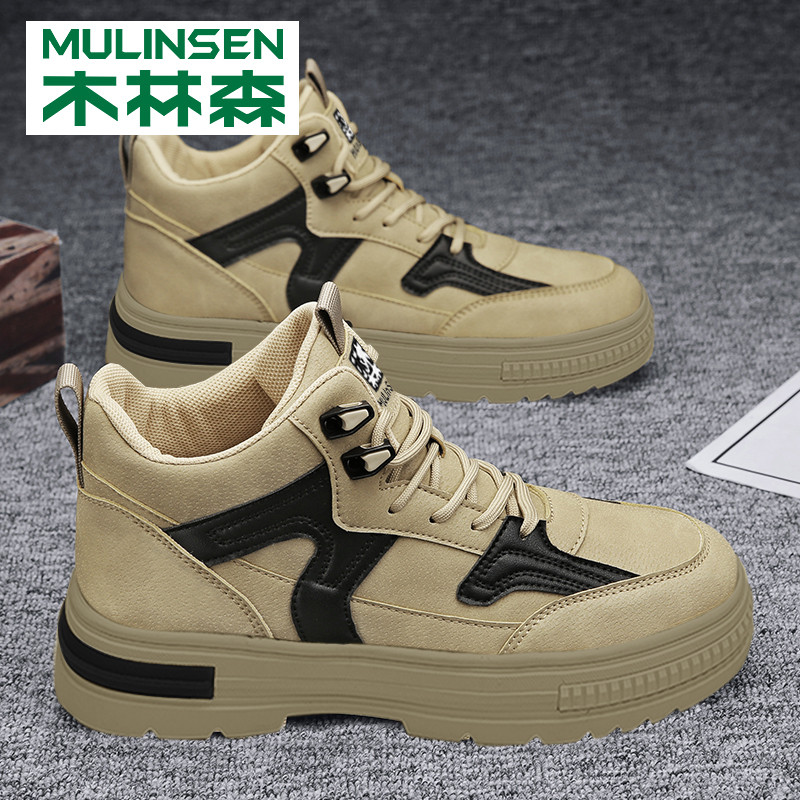 木林森马丁男靴子秋冬季2025新款中高帮工装皮鞋休闲运动软底短靴