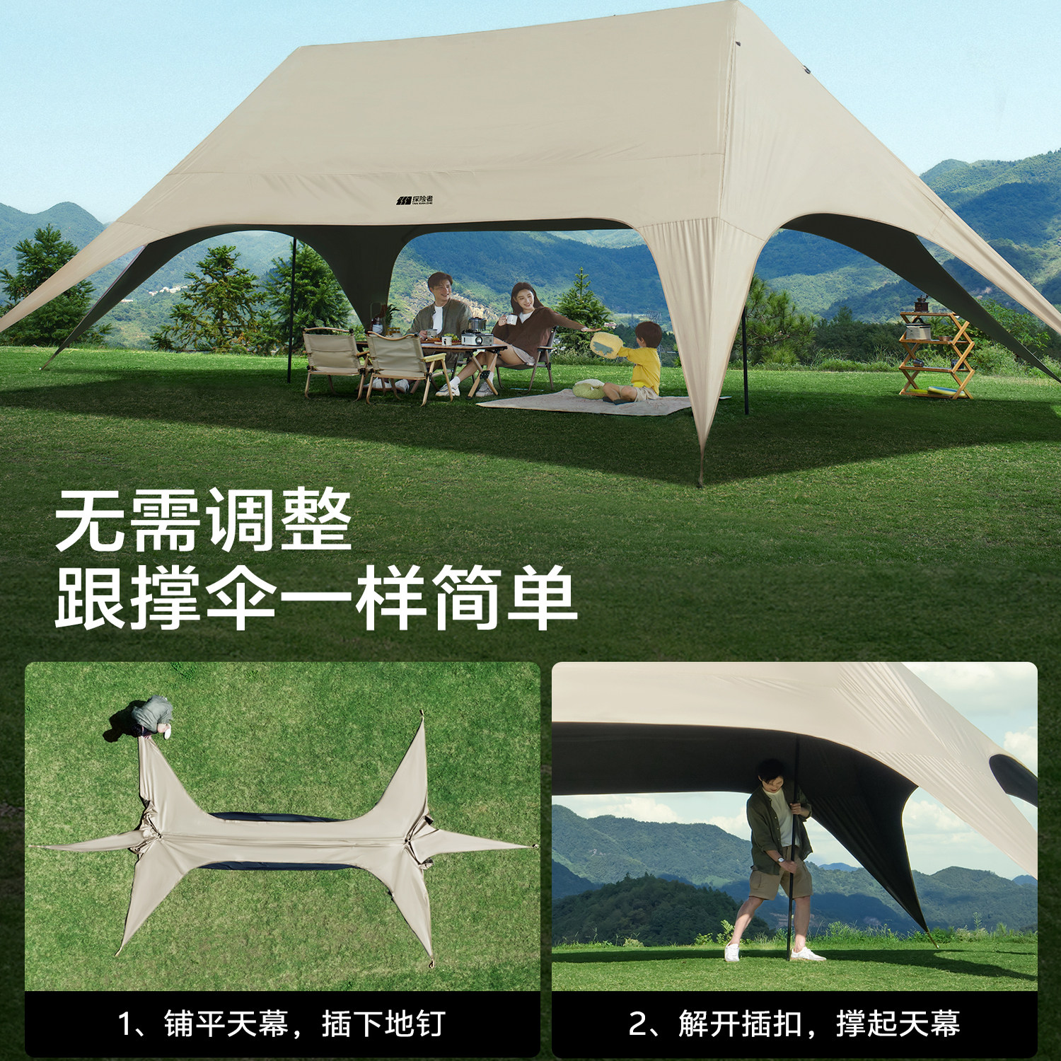 探险者2025新款懒人速开新型黑胶露营遮阳棚逸岚免搭天幕帐篷户外