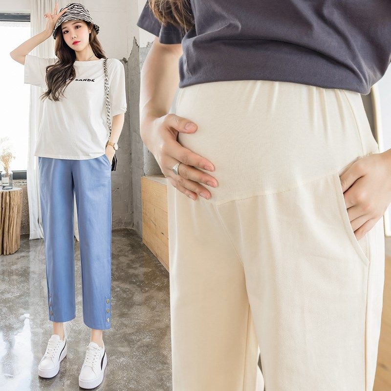 孕妇裤子春秋外穿薄款大码孕妇牛仔裤春夏直筒打底九分阔腿裤夏季