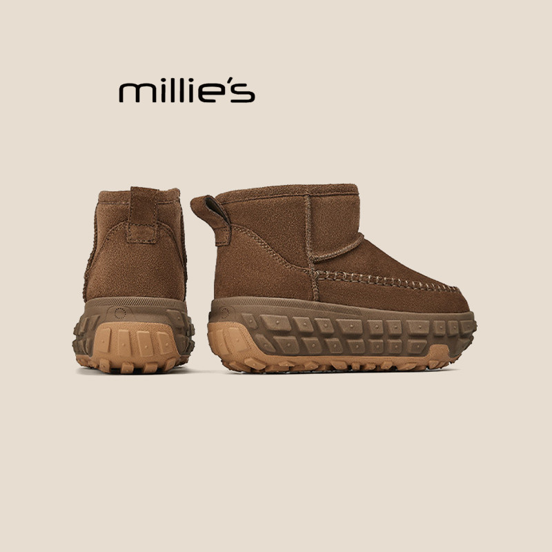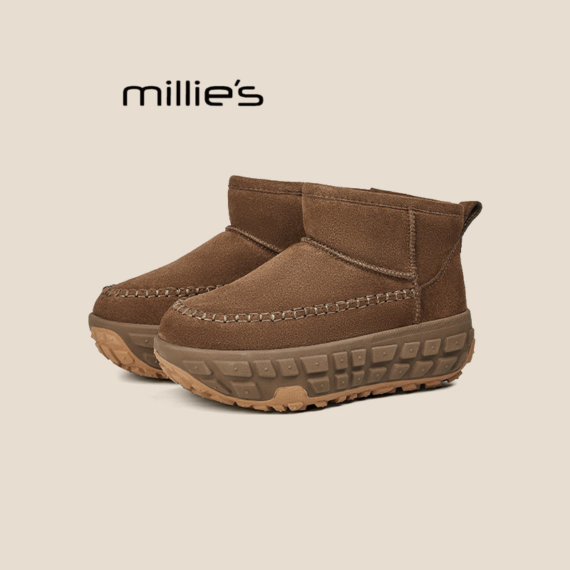 MILLIE'S/妙丽雪地靴冬季新款加绒加厚保暖棉鞋厚底羊毛短筒靴女