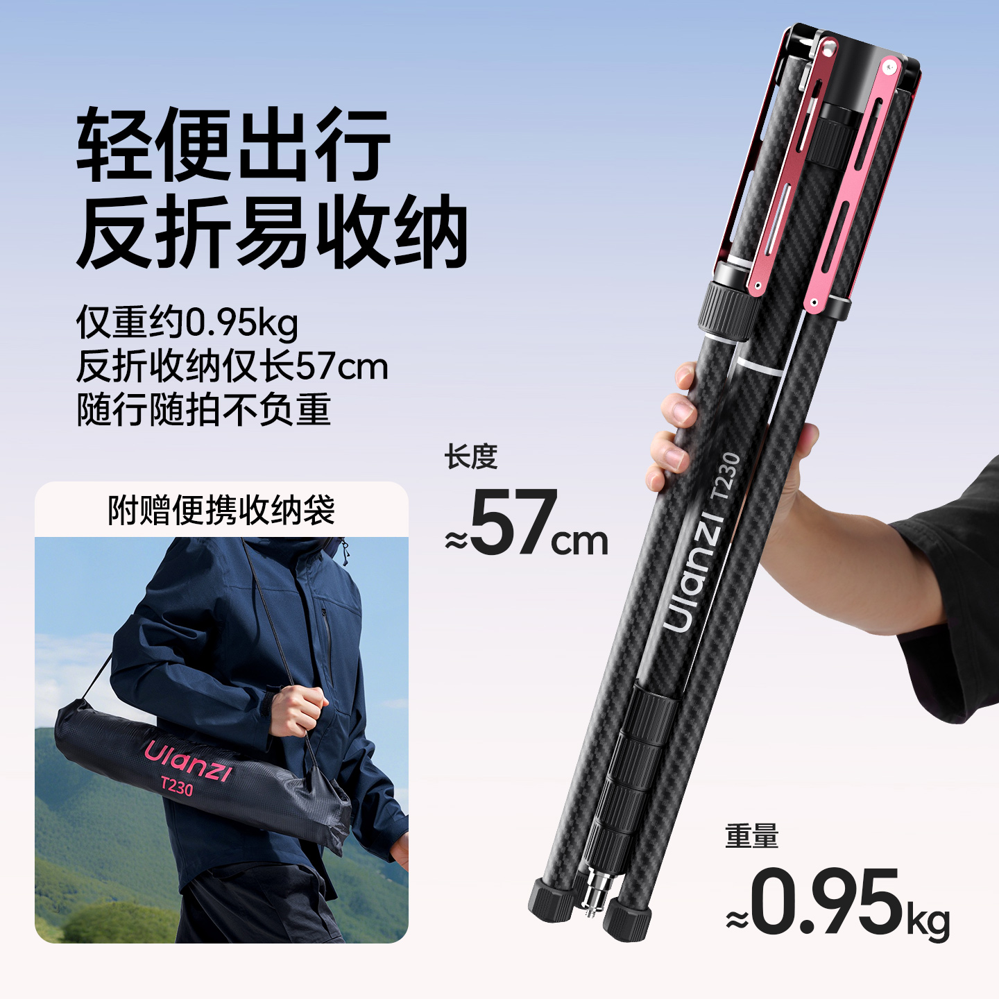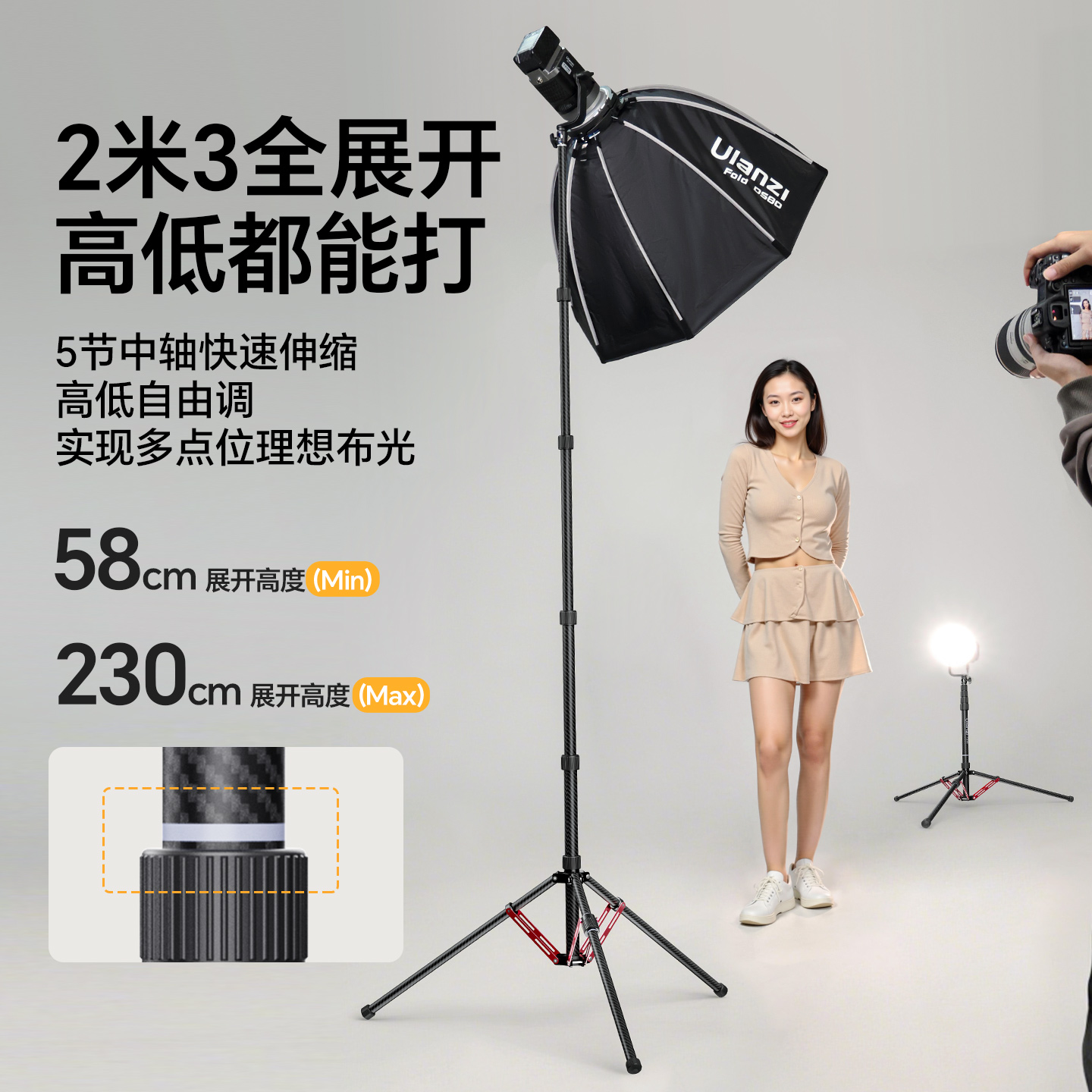 Ulanzi优篮子 T230碳纤维专业反折灯架支架补光灯闪光灯室内户外直播摄影摄像手机相机微单多功能便携三脚架