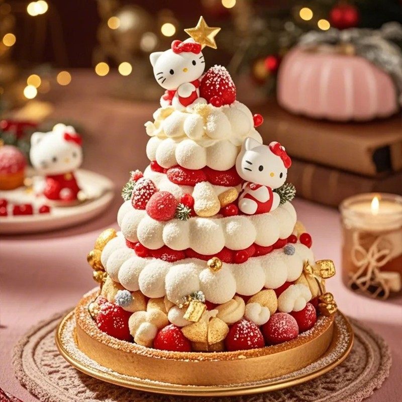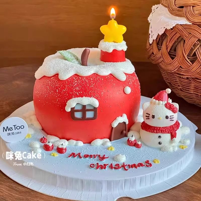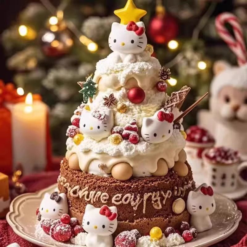 网红小猫头蛋糕摆件新年圣诞蛋糕装饰可爱蝴蝶结生日快乐烘焙插件