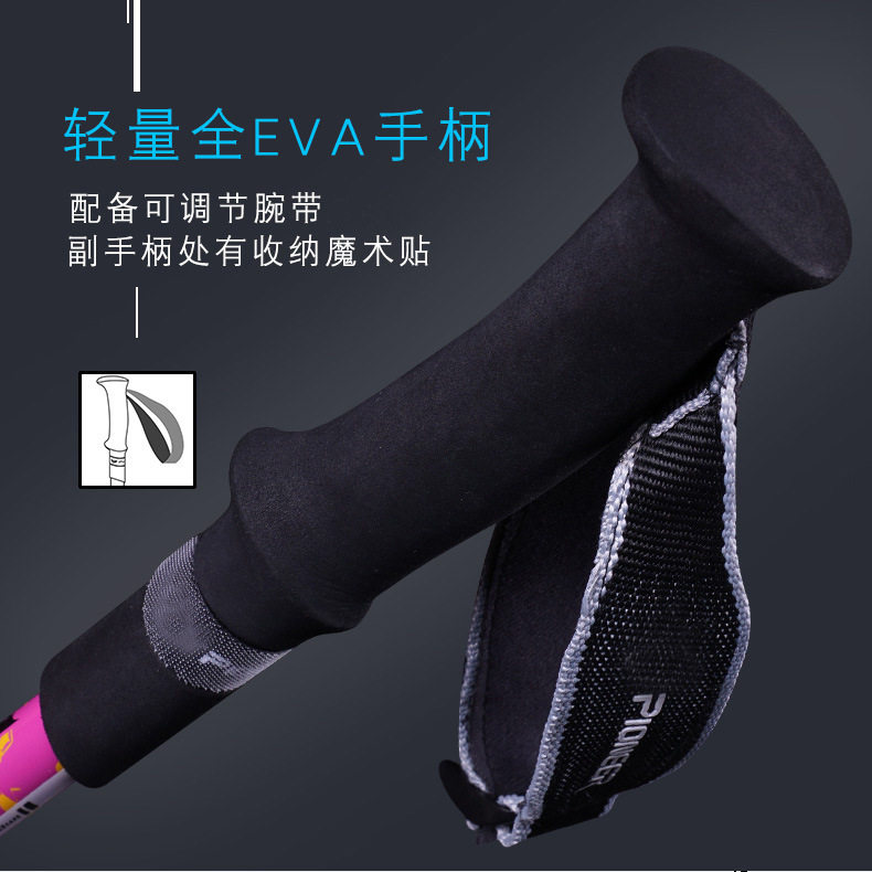 开拓者新款折叠登山杖伸缩五节杖碳素拐杖徒步手杖户外登山棒包邮