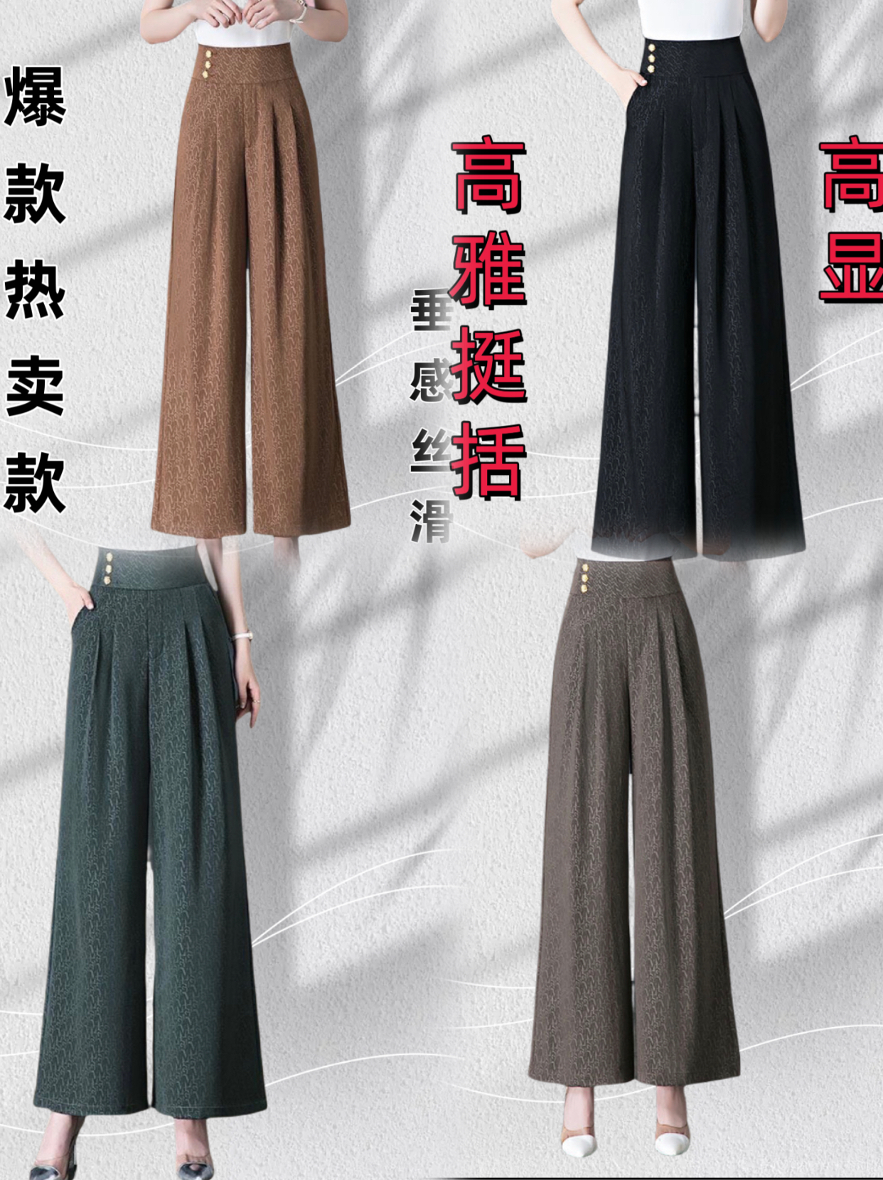 小众妈妈直筒阔腿裤时尚百搭高腰百搭中年女士气质抗皱垂坠感长裤