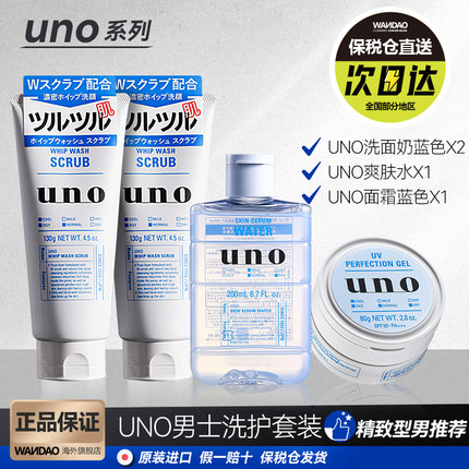 资生堂吾诺UNO男士洗面奶面霜组合套装保湿蓝色黑头补洗护肤4件