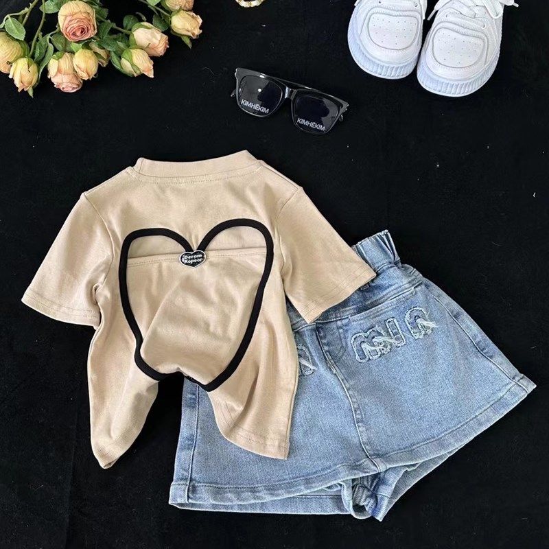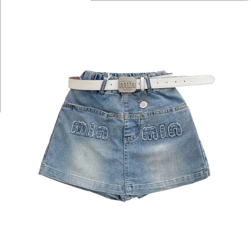 女童时尚假两件牛仔短裤2024夏季新款韩版儿童洋气百搭牛仔裙裤潮
