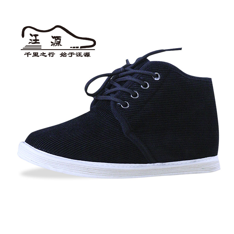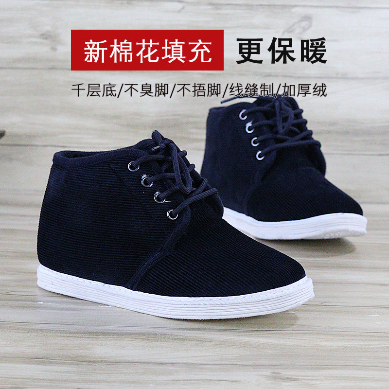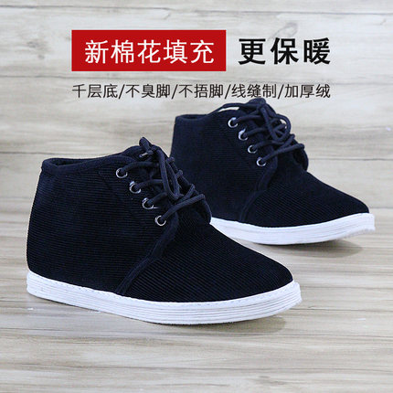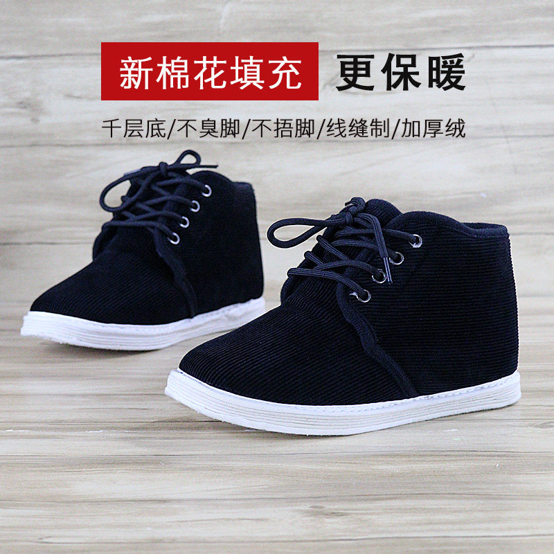 汪源冬季加厚棉花高帮老北京千层底中老年男鞋保暖黑色系带棉鞋男