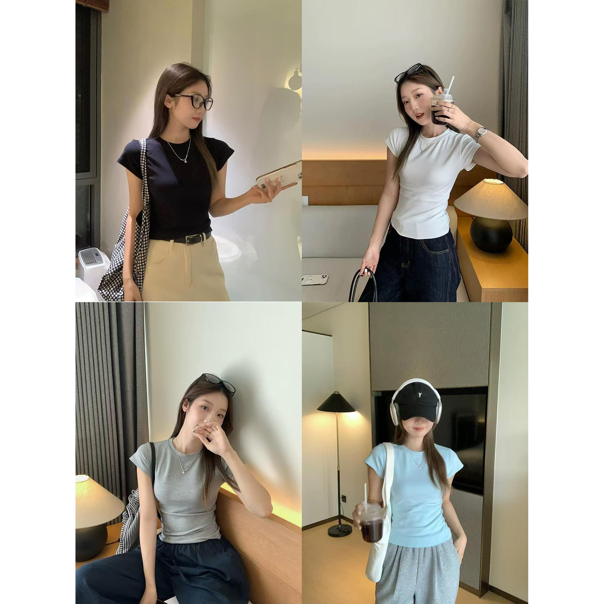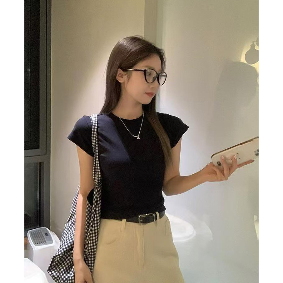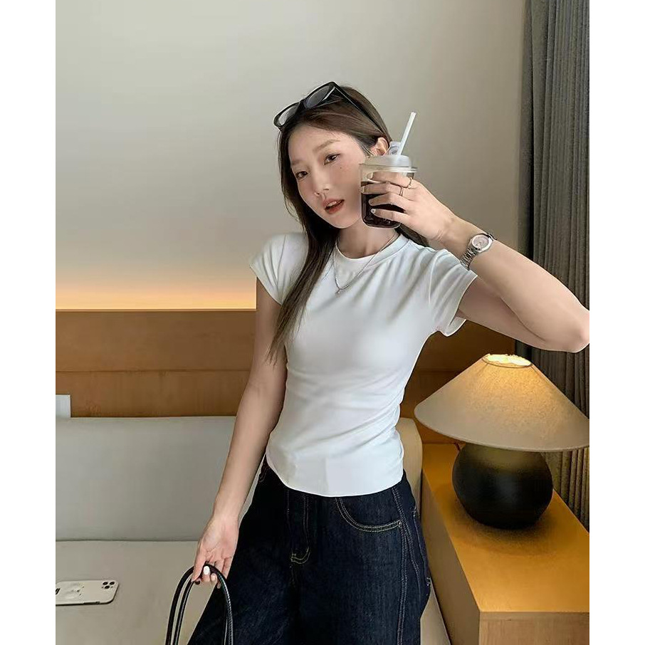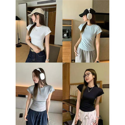 爆款修身短袖t恤女夏季新款纯色显瘦上衣女装精品白色打底衫