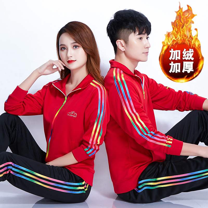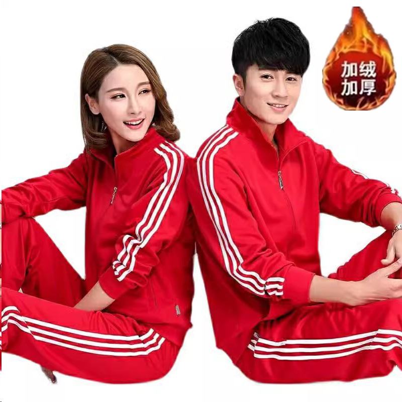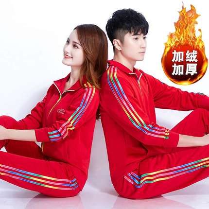 佳木斯运动服套装加绒加厚男女中老年广场舞演出团体健身操徒步队