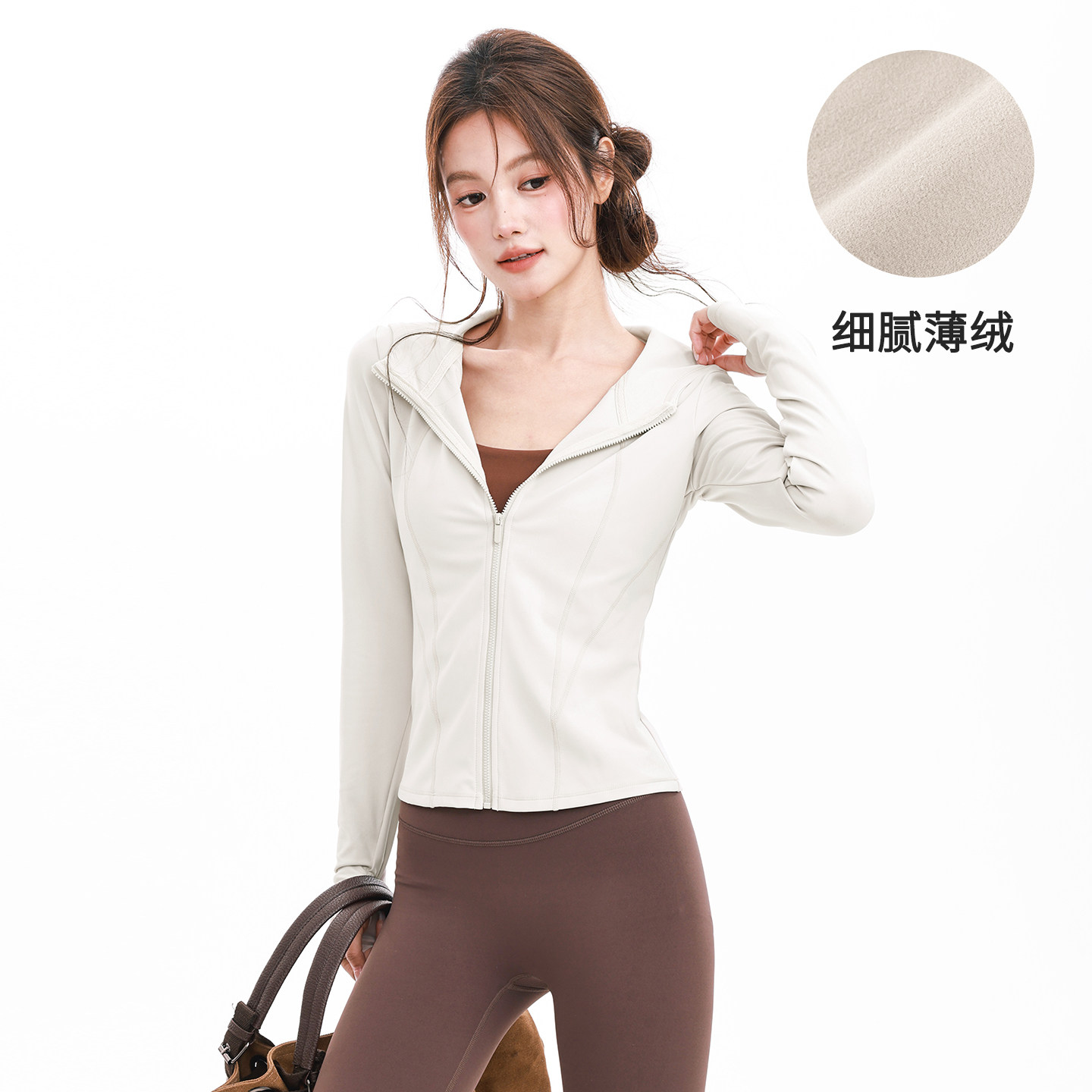奔跑吧卡卡加绒连帽运动外套女跑步骑行运动服瑜伽健身服秋冬外穿