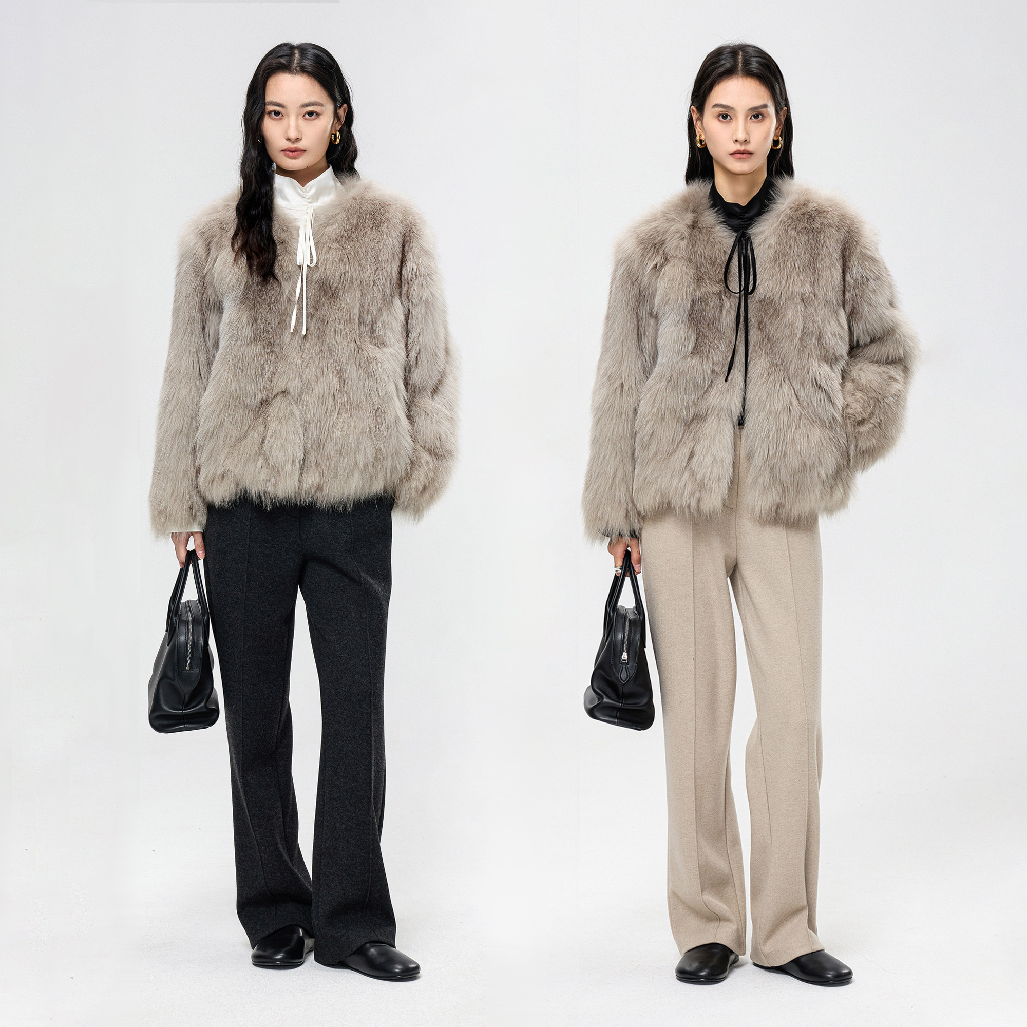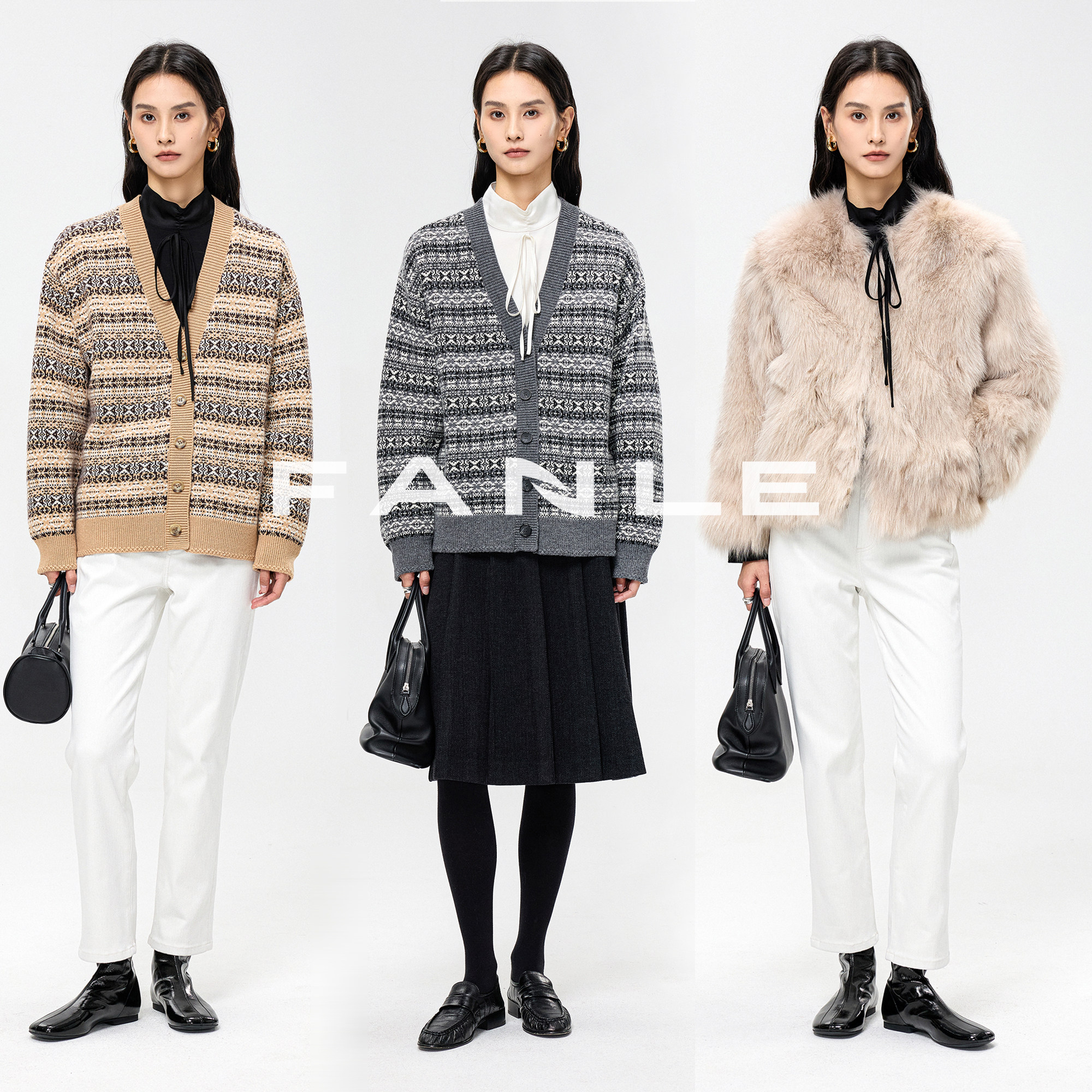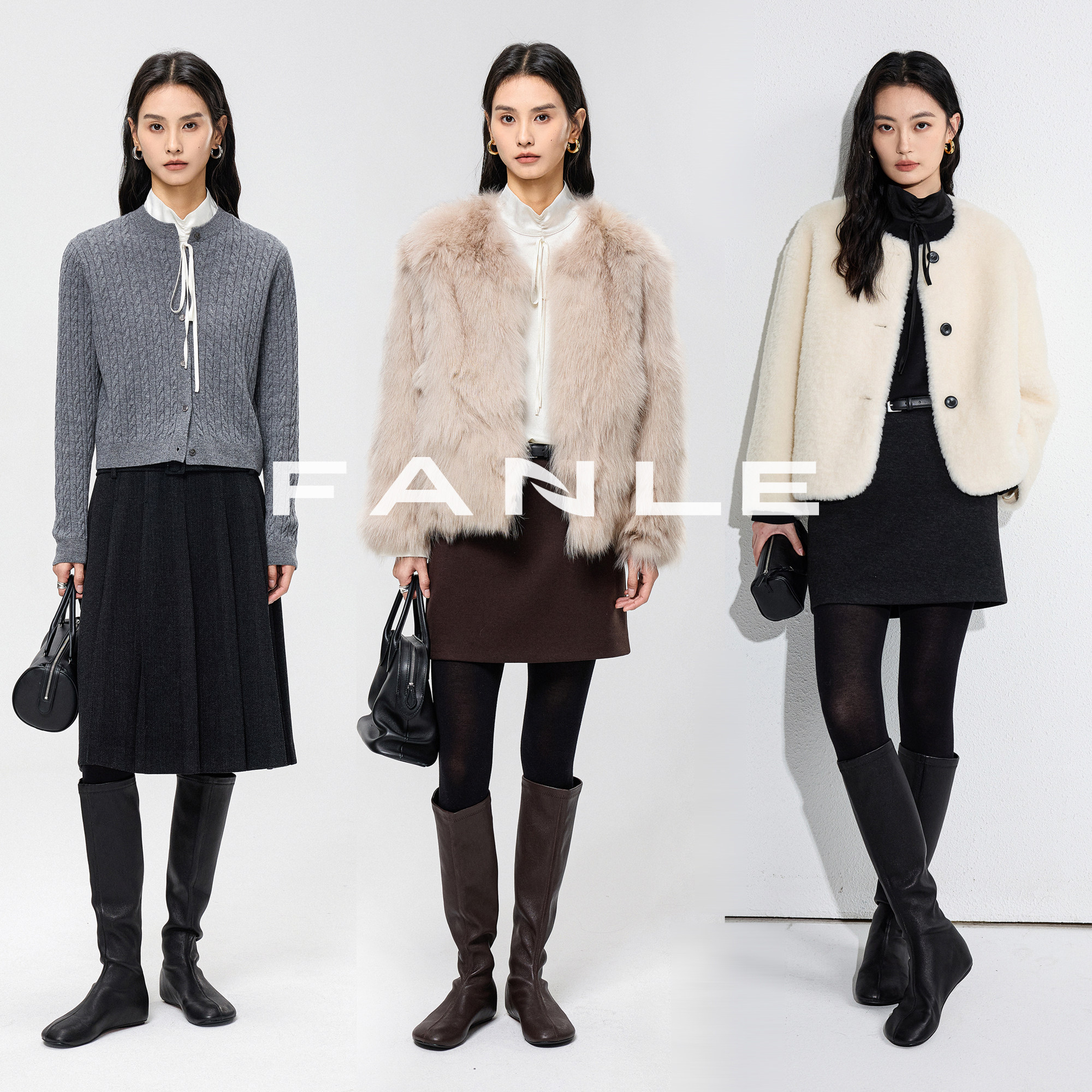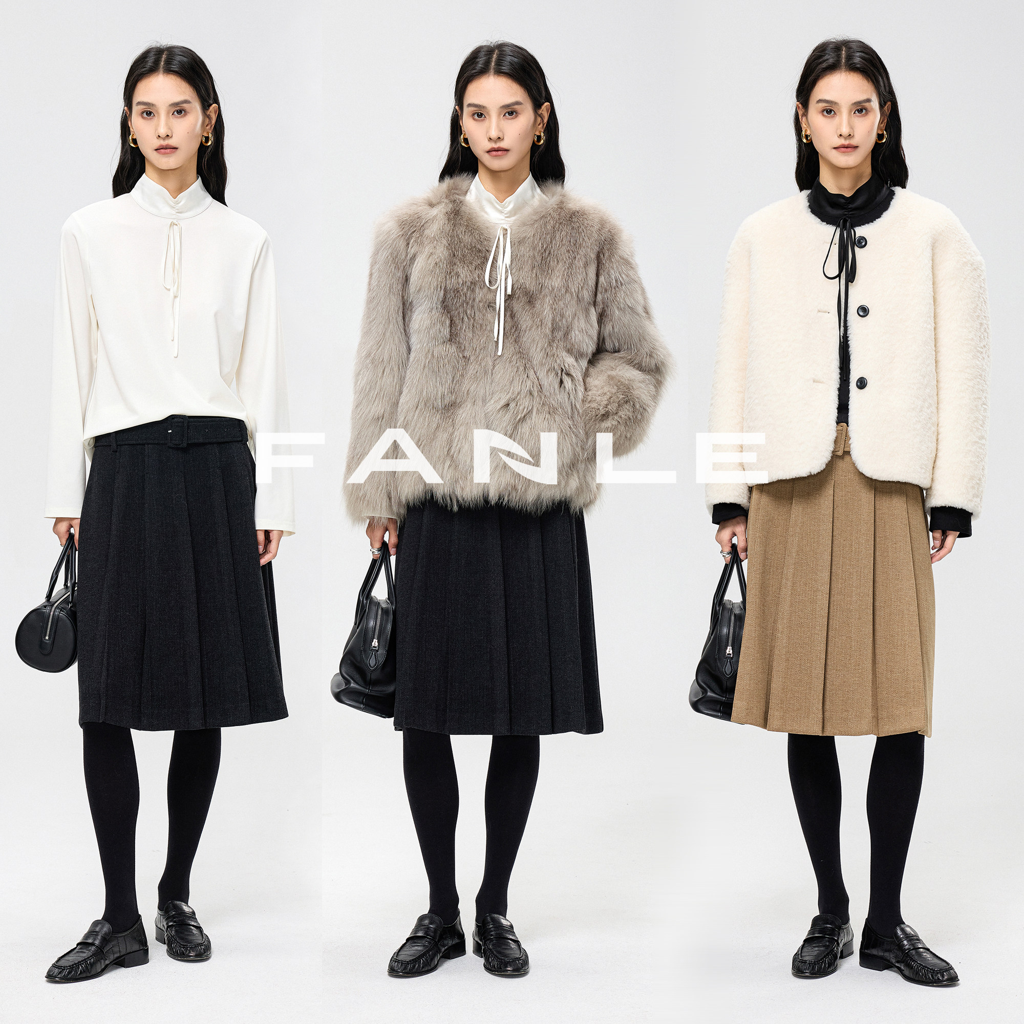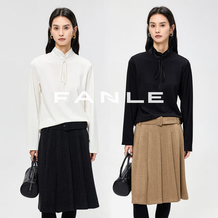 FANLE STUDIOS 高品醋酸羊毛拼接立领绑带气质加绒打底针织衫T恤
