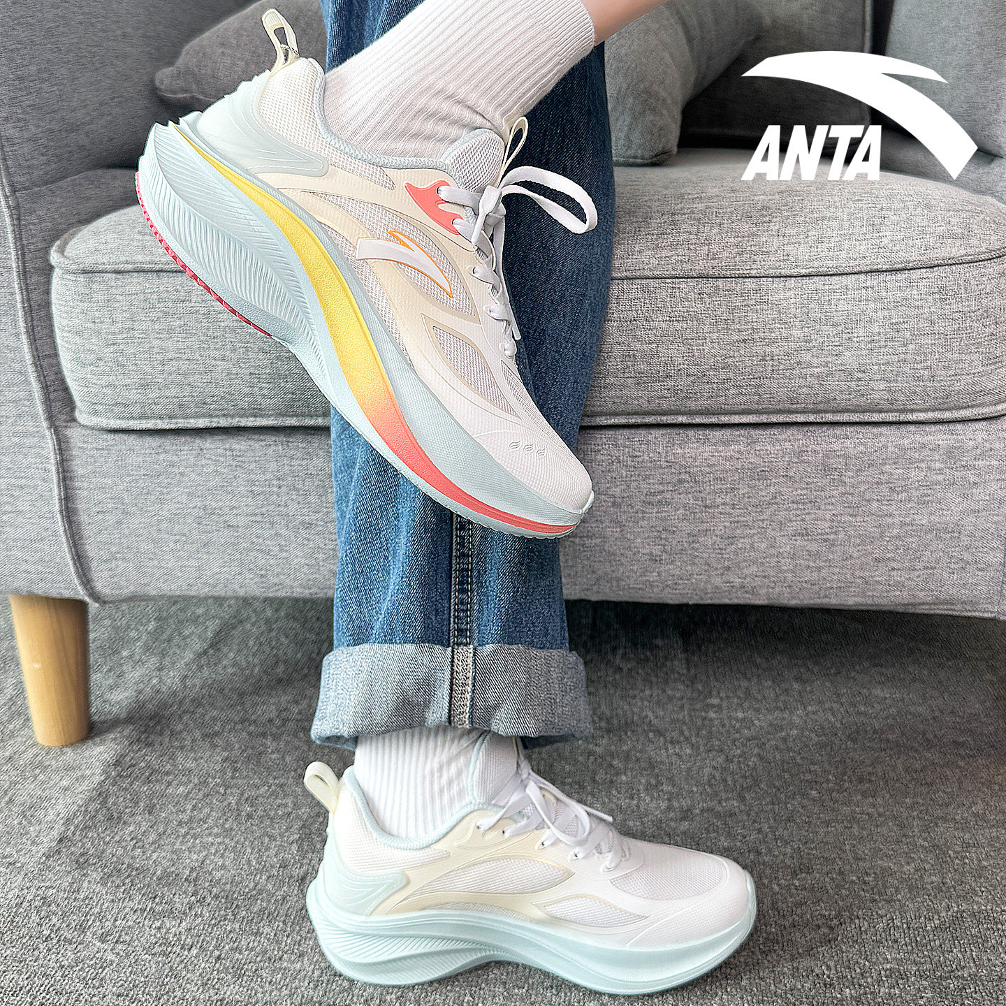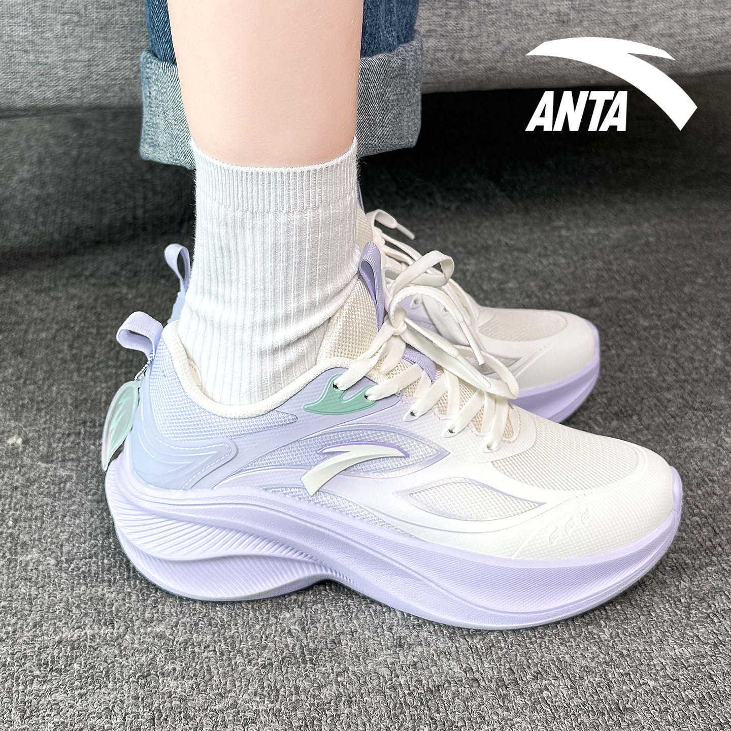 安踏叶子女鞋小学生轻便跑步鞋2025新款小码33码初中生回弹运动鞋