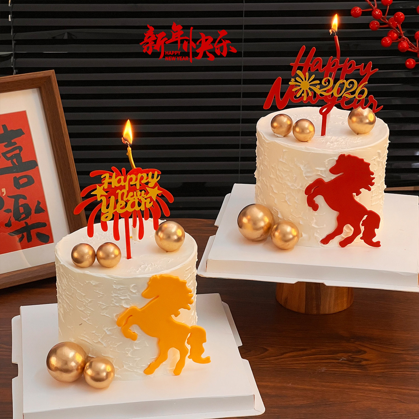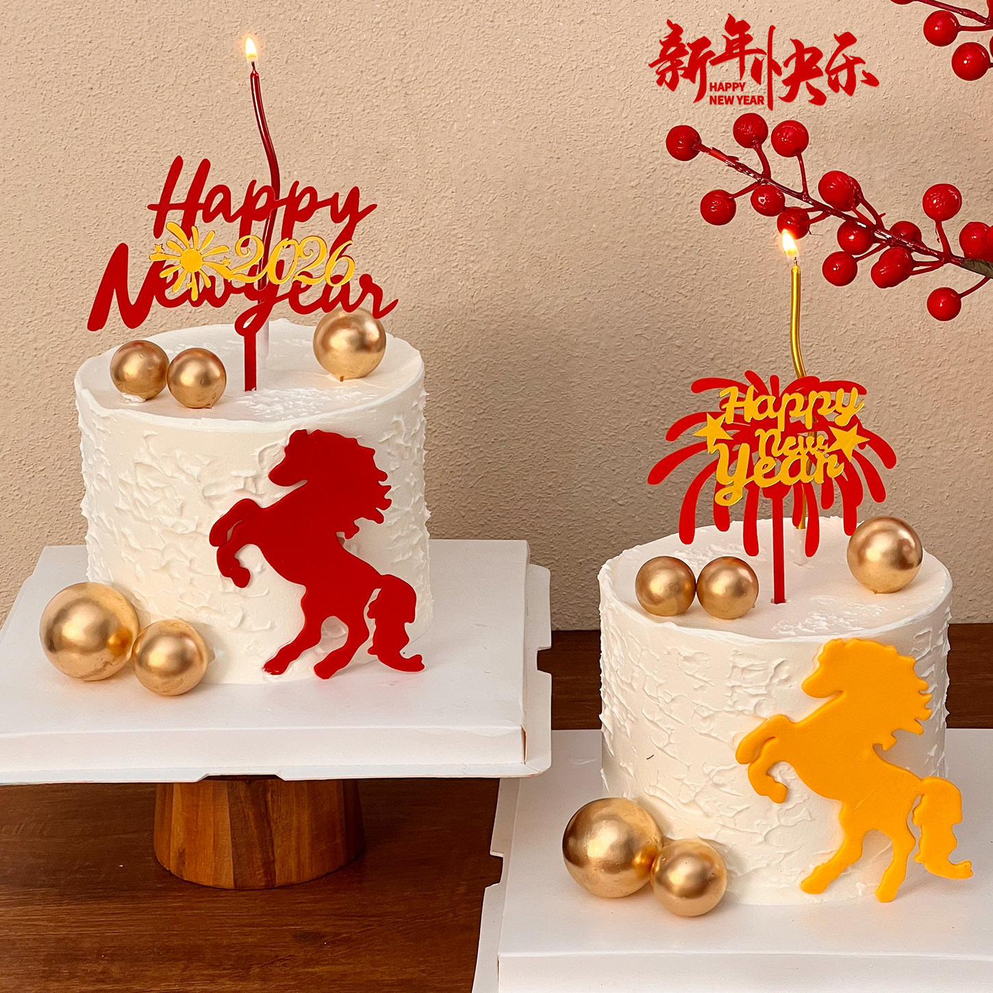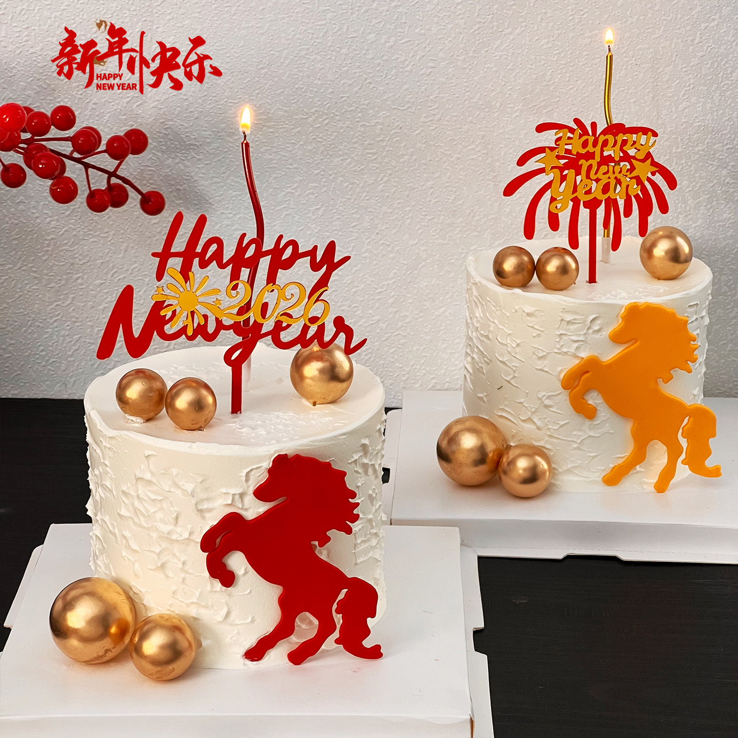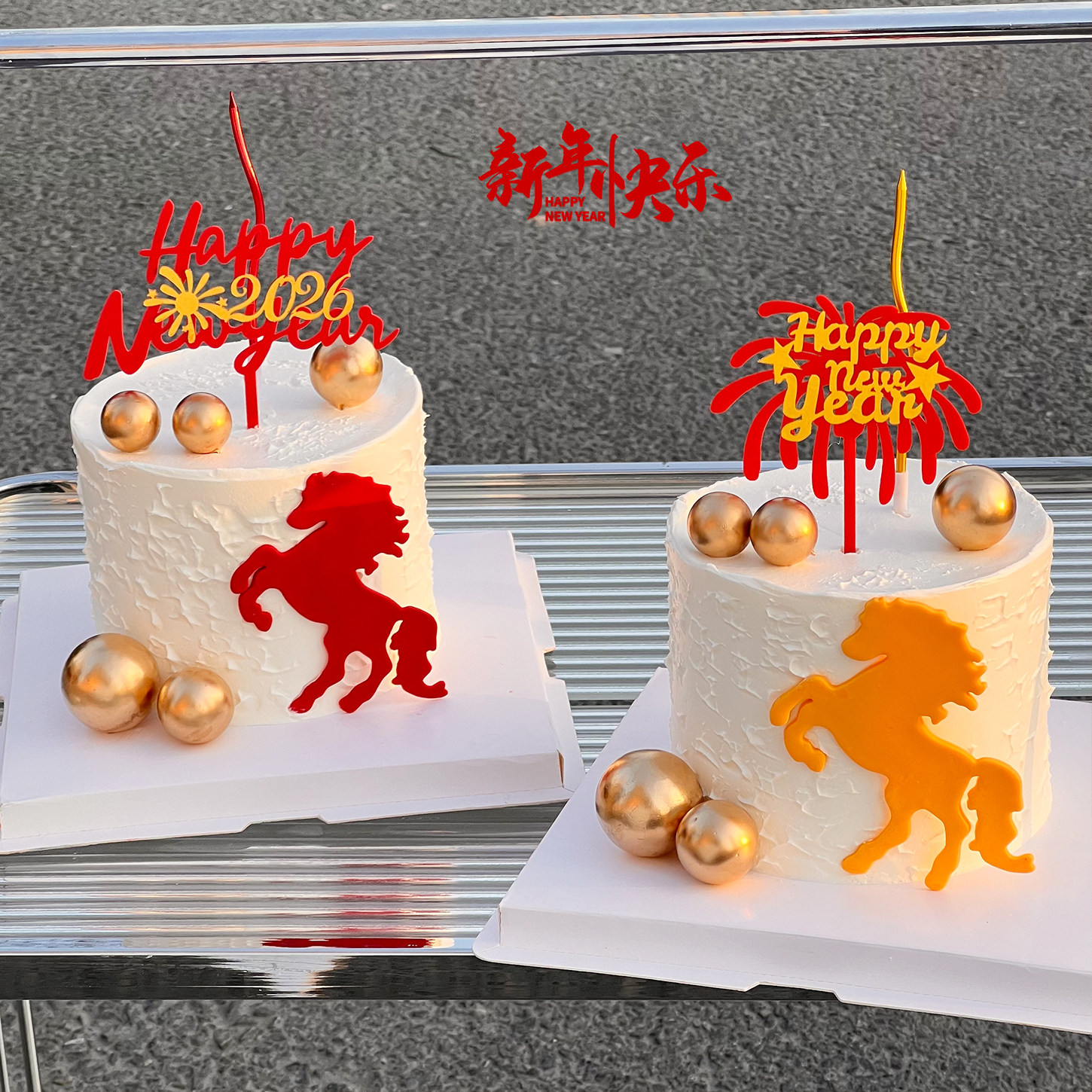2026跨年马到成功蛋糕装饰千里马翻糖切模新年快乐礼花亚克力插件