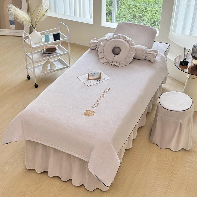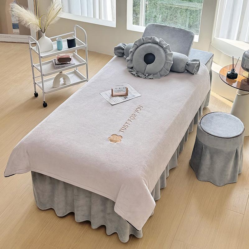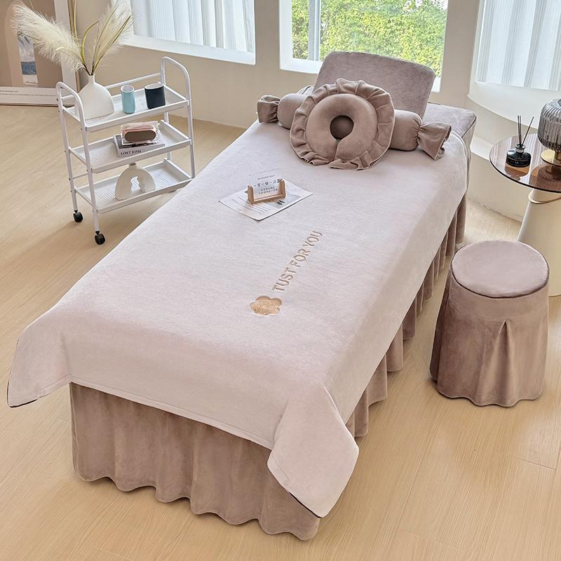 高端牛奶绒美容床罩四件套秋冬季加厚保暖美容院按摩理疗洗头床套