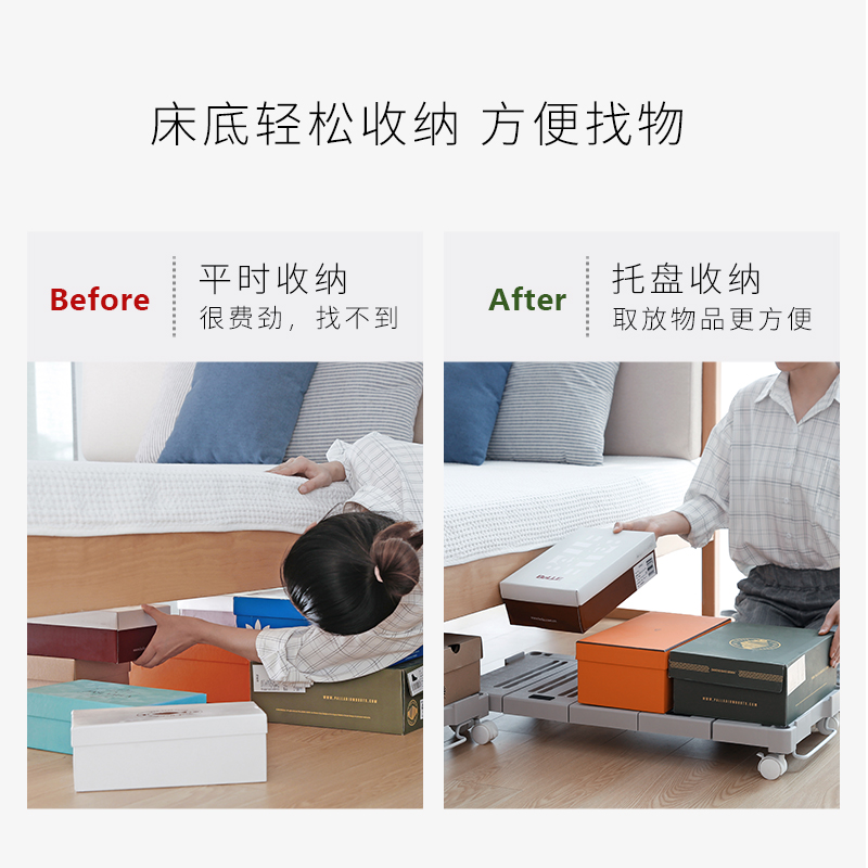 tenma天马可移动托盘整理箱落地可伸缩床底收纳整理架搬运托盘