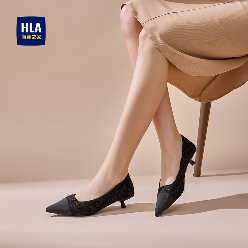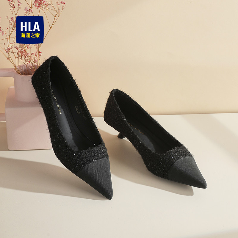 海澜之家细跟高跟鞋女法式小香风2025新款气质名媛低跟尖头单鞋女