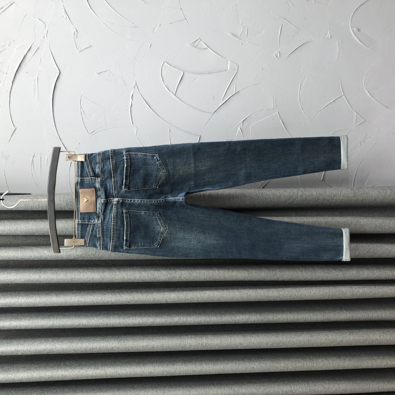 三粒扣高腰小脚牛仔裤女