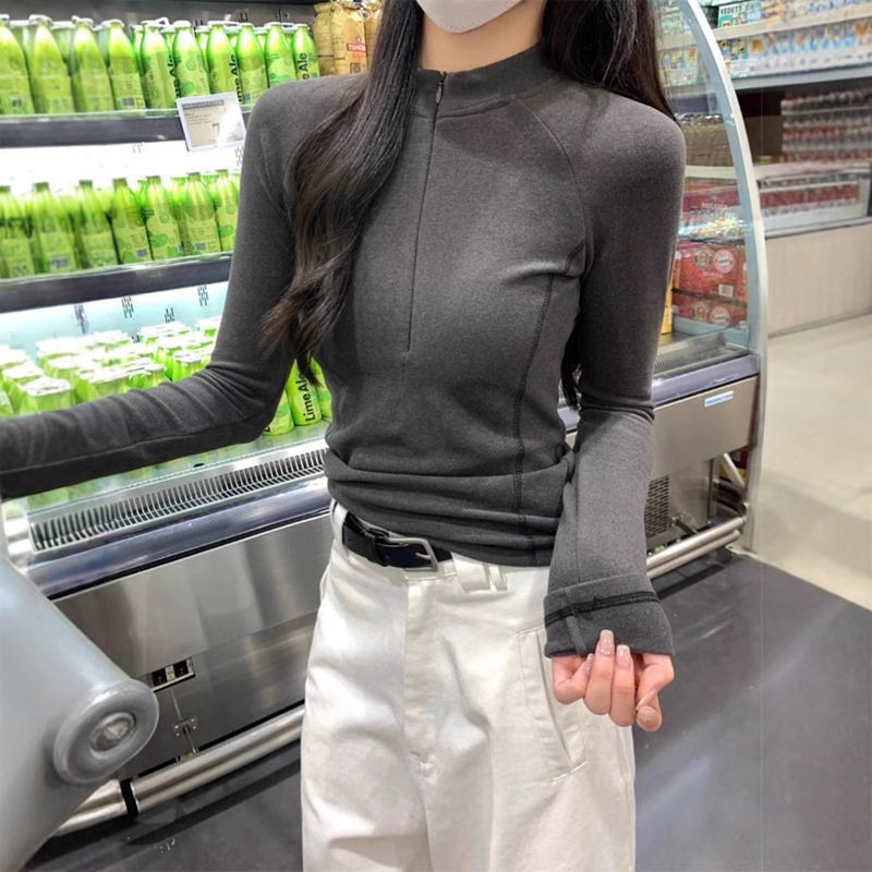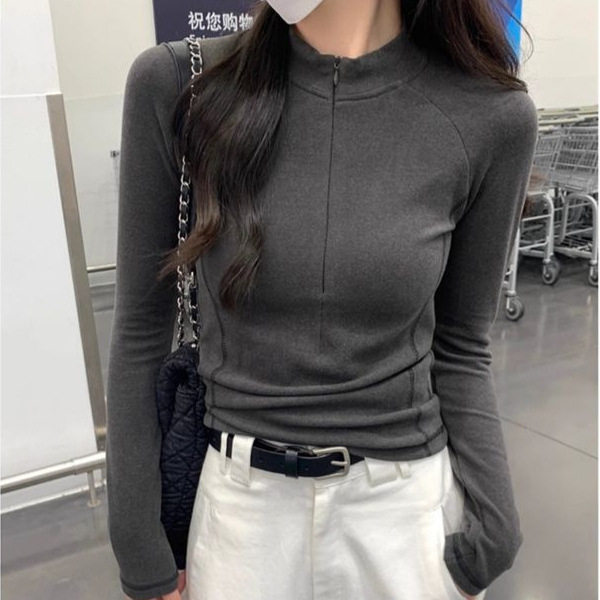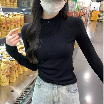 纯色半拉链立领德绒内搭打底衫女春秋季短款修身长袖T恤磨毛上衣