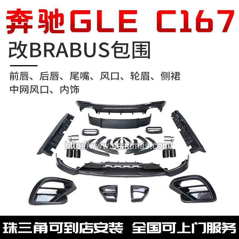 奔驰GLE C167改装brabus巴博斯小包围碳纤维前风口侧裙前后唇尾喉