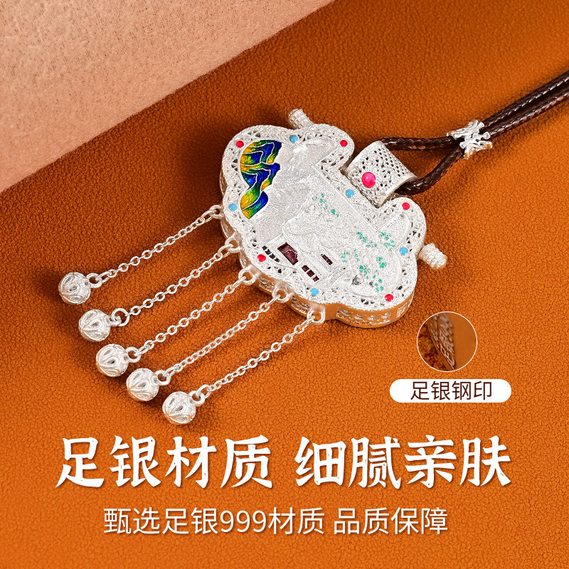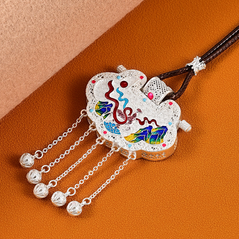 足银999镂空珐琅彩锁包吊坠