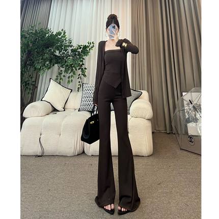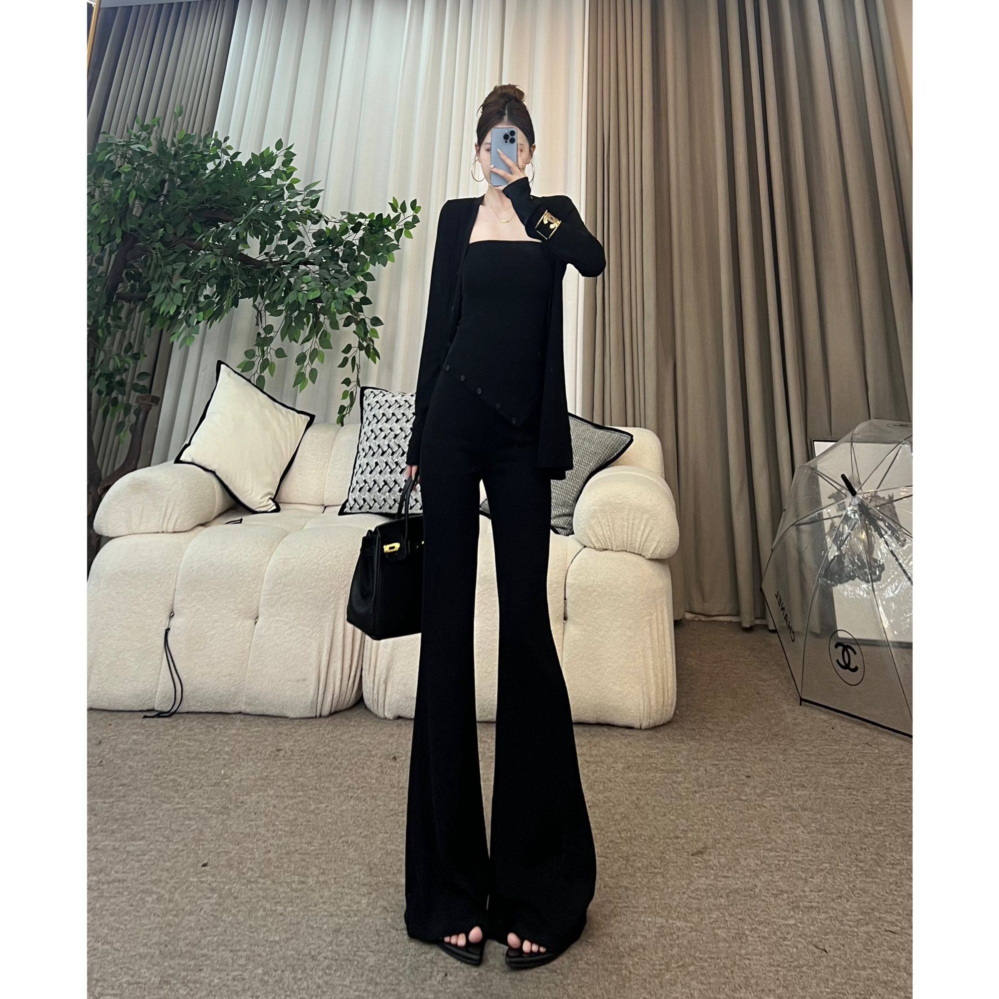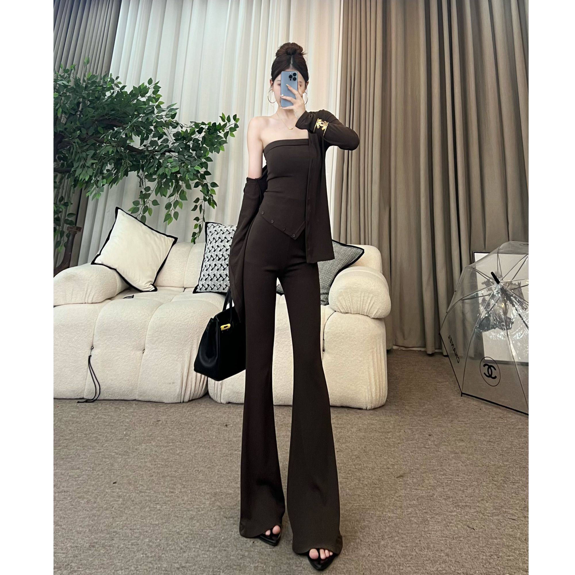 XIAOQIN【西野暮色】慵懒抹胸不规则上衣针织微喇裤三件套T165