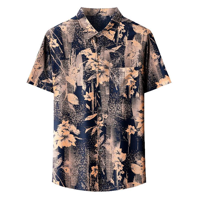 爆境款现308-M货跨中男夏季丝光棉年亚麻花印大码短袖衬衫多色