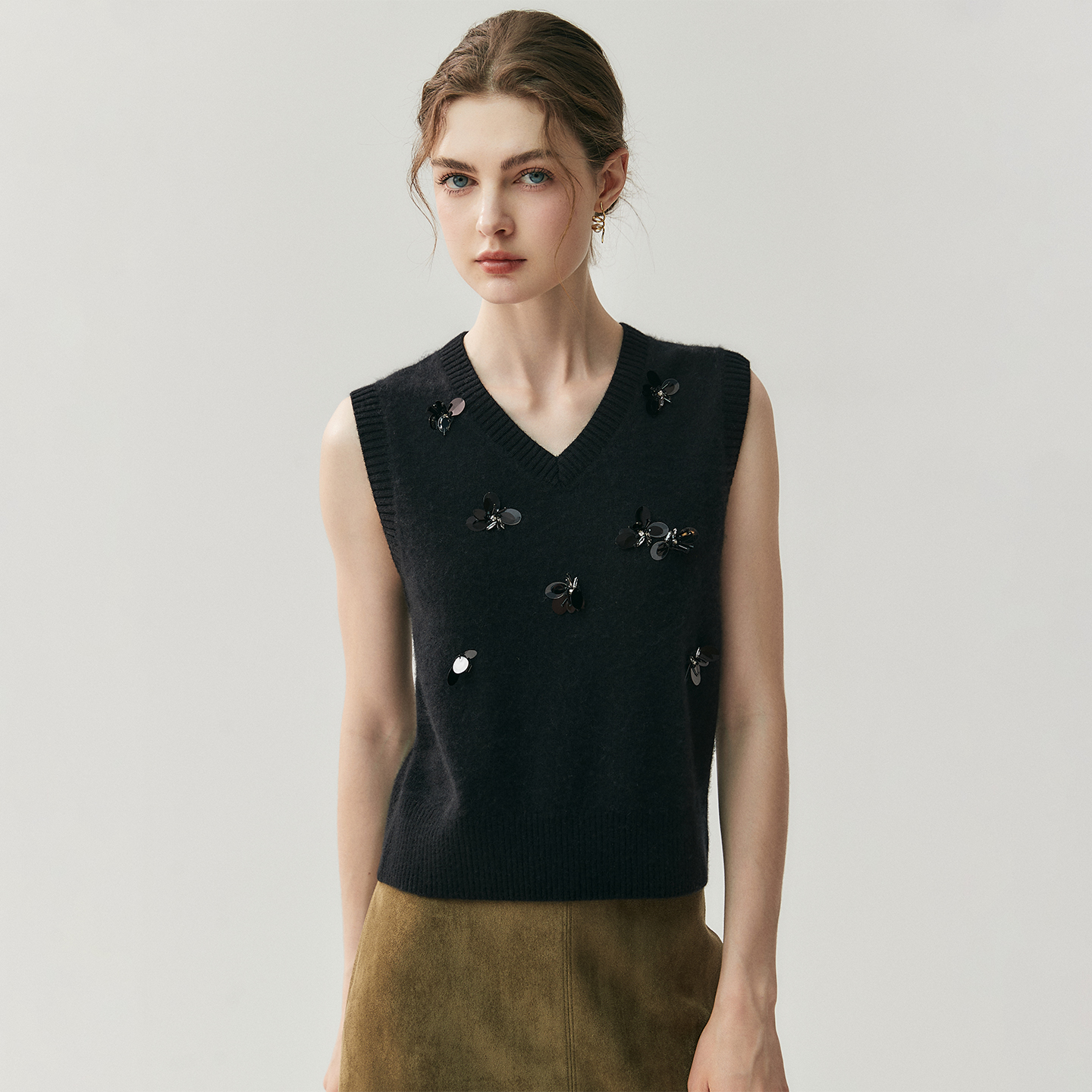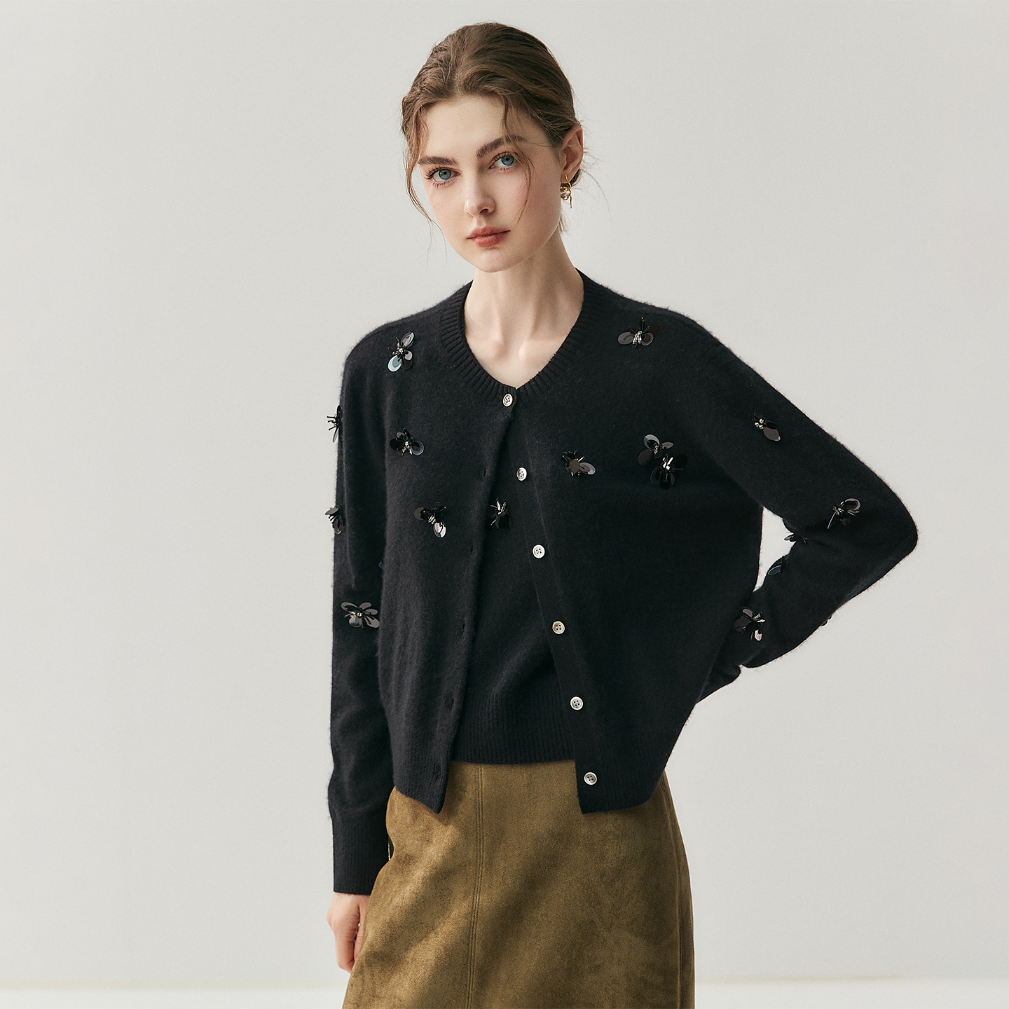 moco同款重工蝴蝶羊绒开衫马甲两件套女轻奢时尚宽松针织毛衣外套