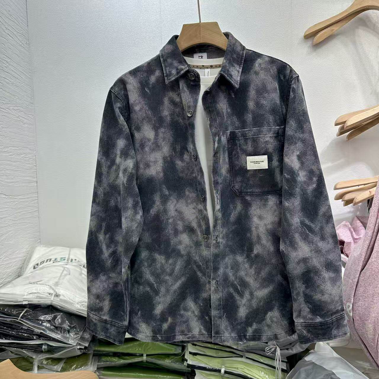 美式牛仔衬衫夹克外套男士春秋季2025新款潮牌宽松翻领上衣服男装