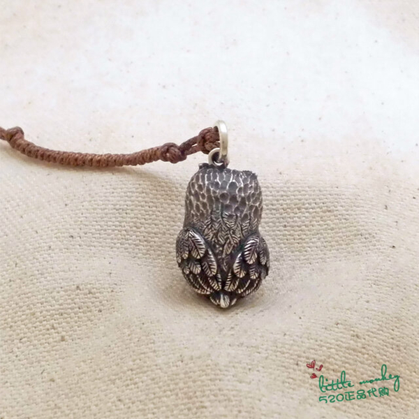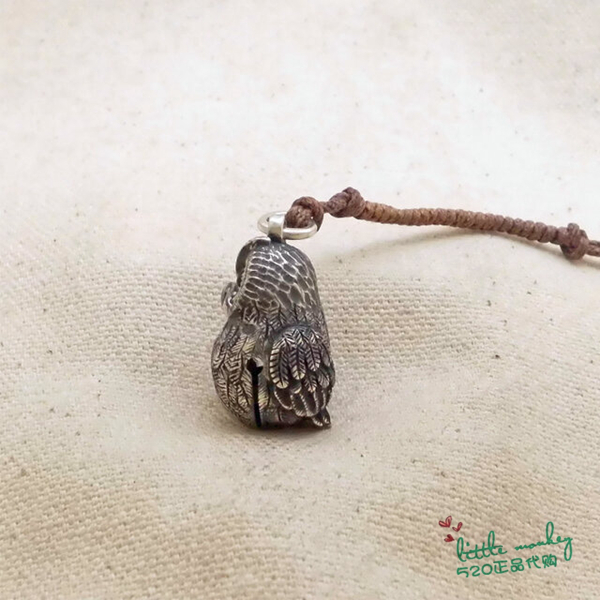 日本代购 猫头鹰 匠人手工 公仔形 925银铃铛 钥匙挂件 包挂件