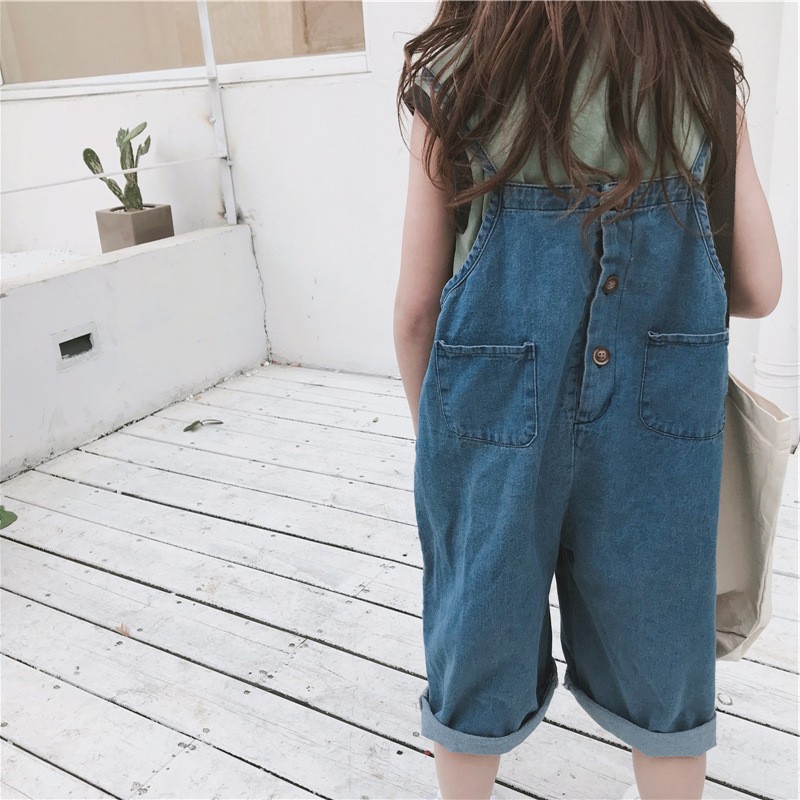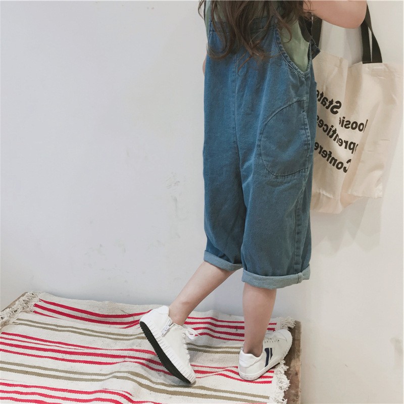 童装夏季新款 女童韩版两面穿背带裤 中大童纯色牛仔阔腿裤