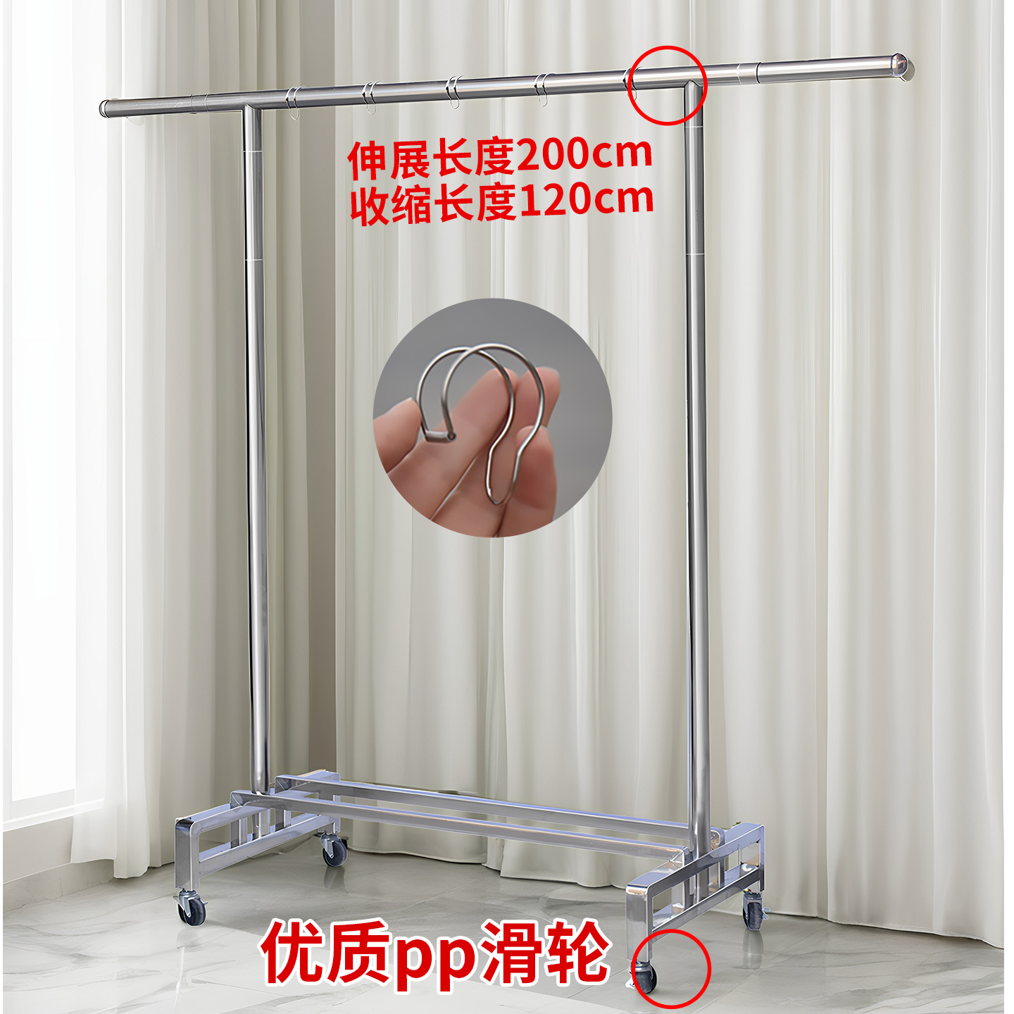 晾衣架落地特厚不锈钢室内卧室单杆式晒衣架挂衣架凉衣服架子家用