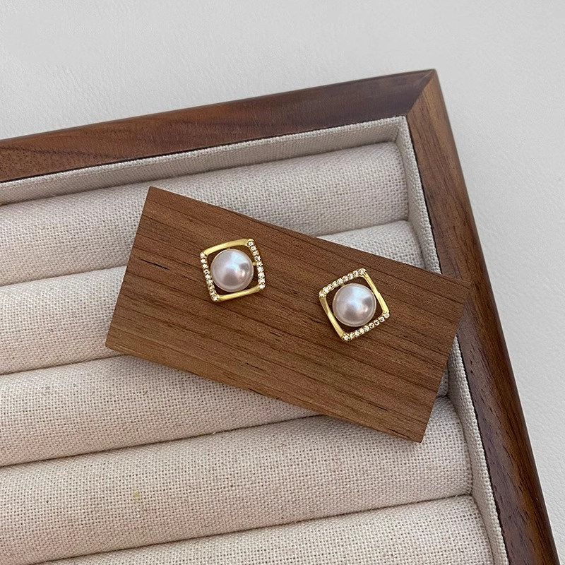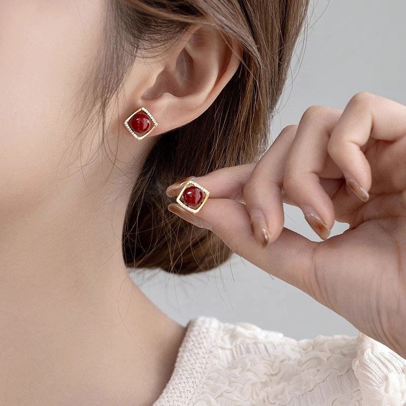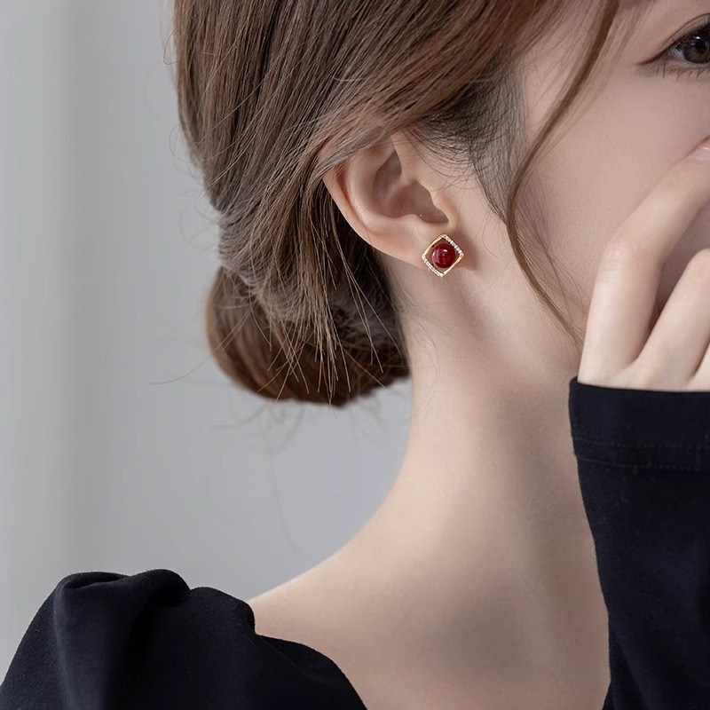 925银女小众设计红色珍珠耳钉