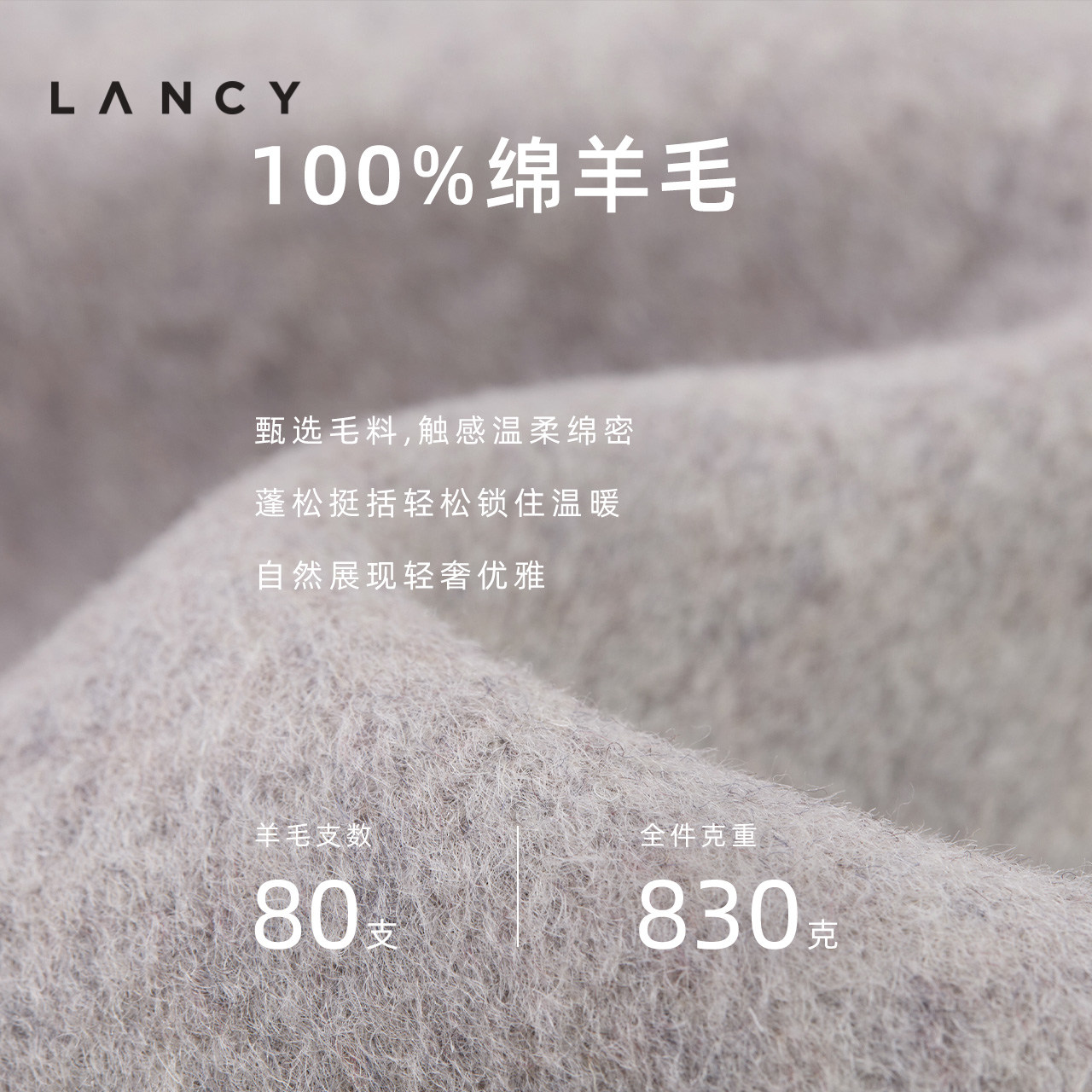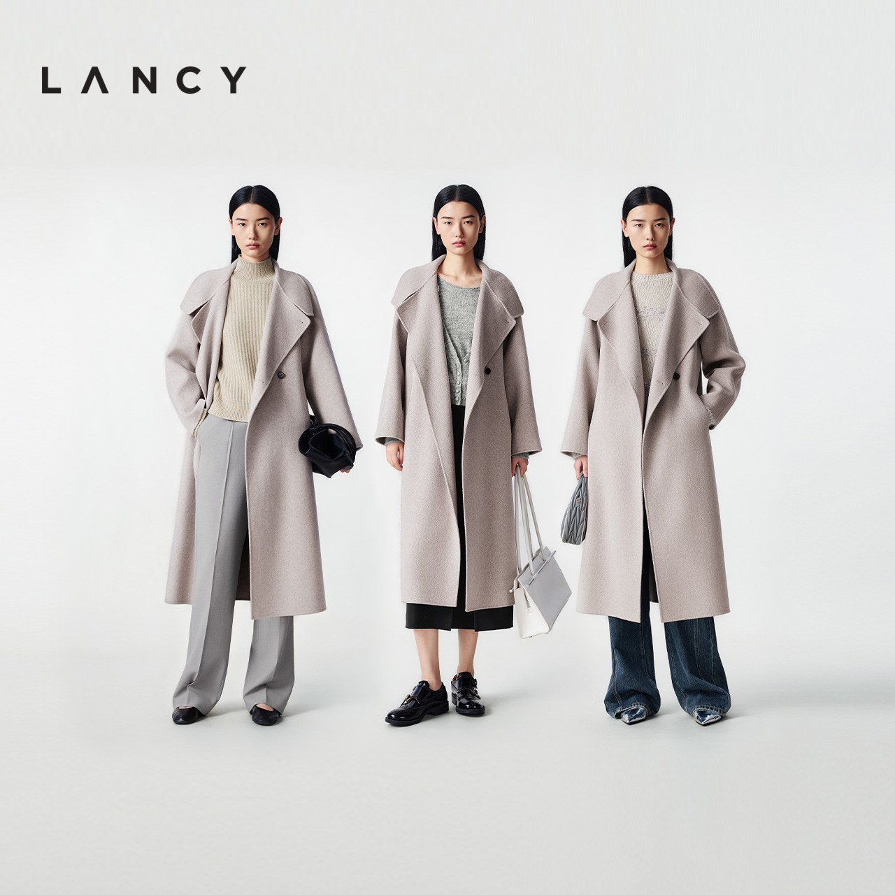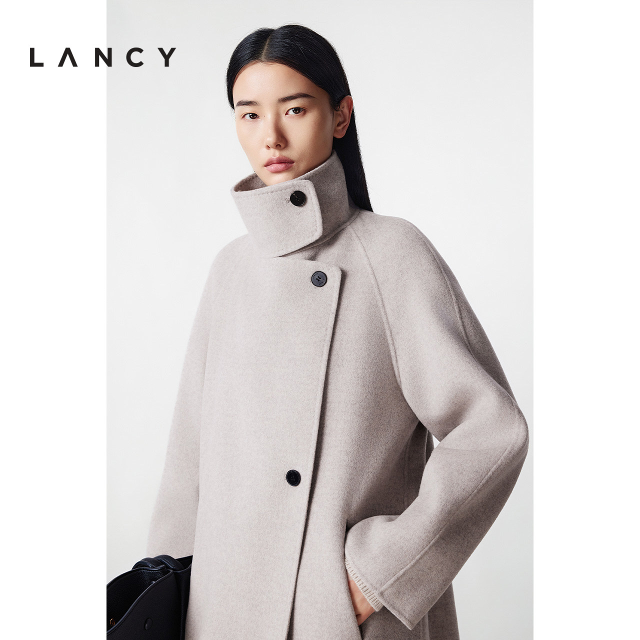 【纯羊毛】LANCY/朗姿2025冬季新款简约设计感双面呢高领长大衣女