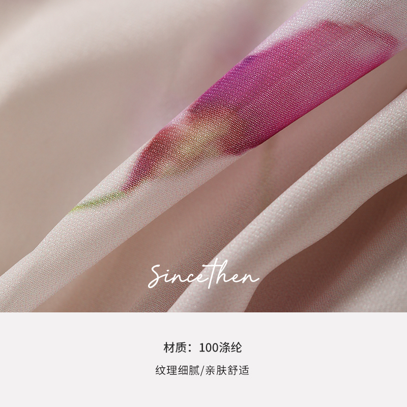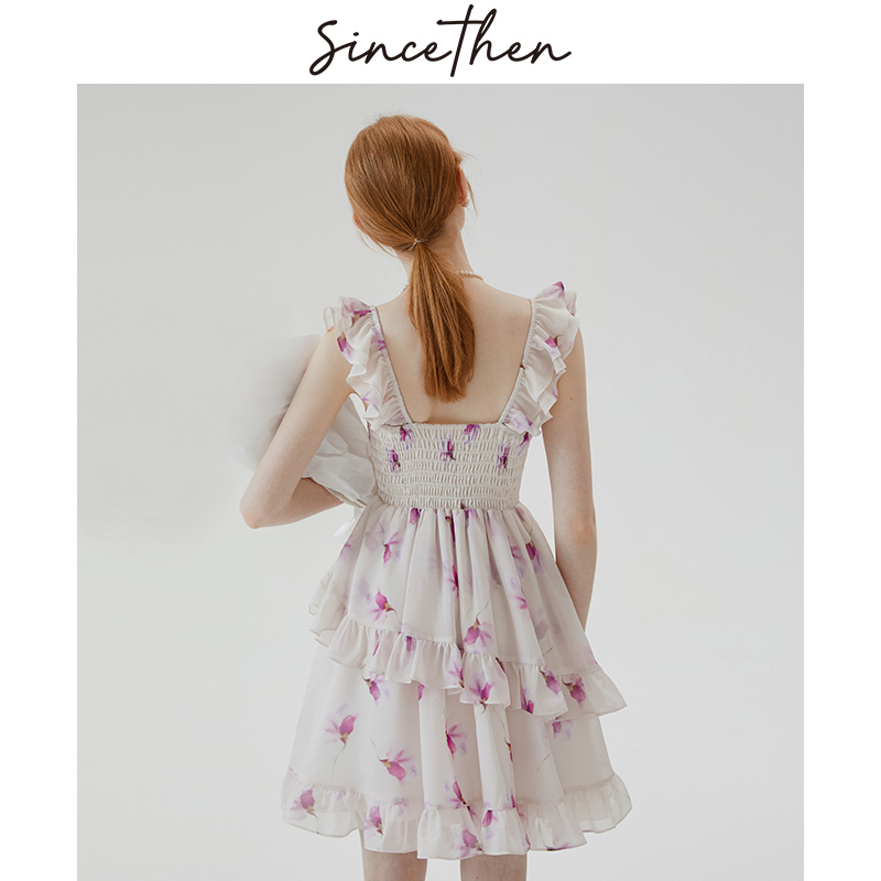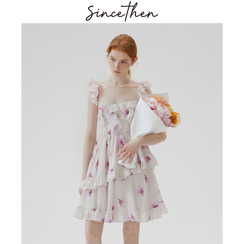 sincethen漫花桃蕊法式吊带气质小短裙甜美碎花荷叶边连衣裙女夏