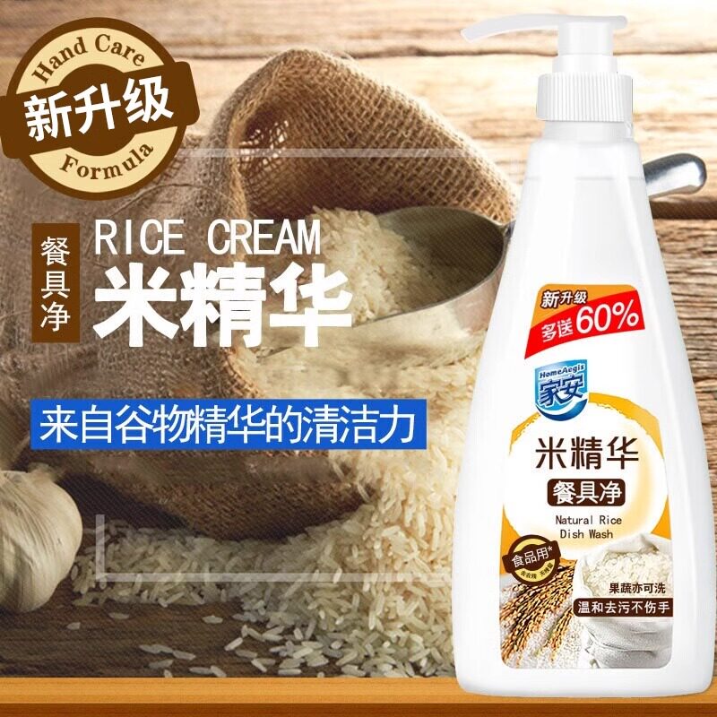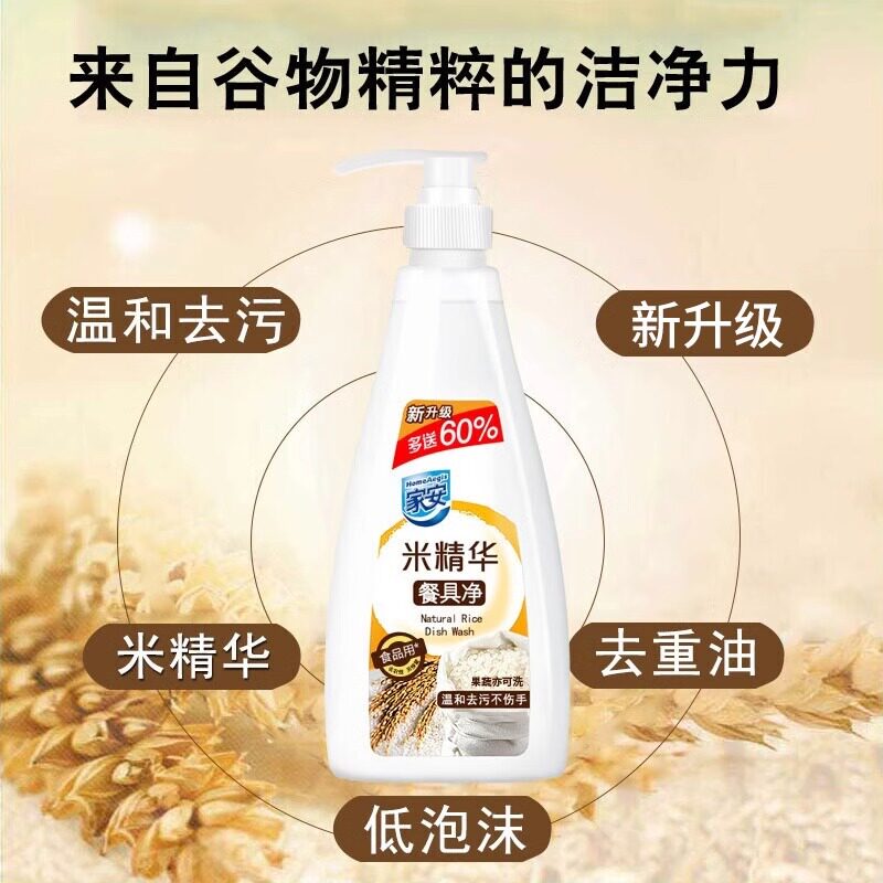 家安米精华餐具净无残留洗洁精不伤手天然清洁剂食品用去油家庭装