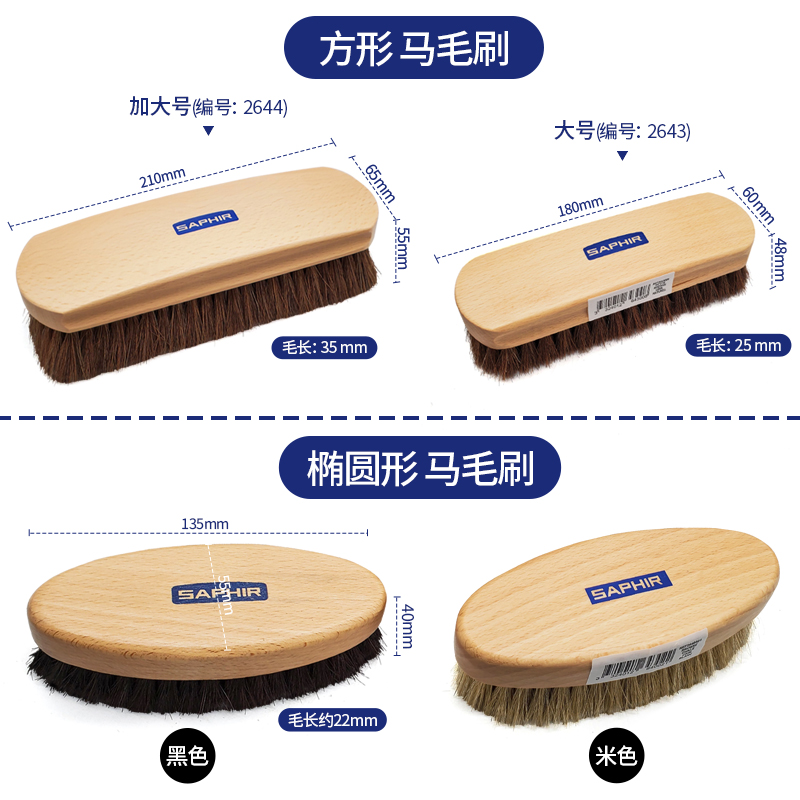 SAPHIR马毛刷莎菲雅皮革护理软毛刷抛光除尘打理鞋刷衣帽刷全马毛