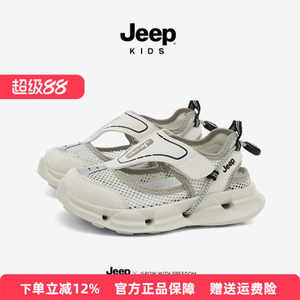 Jeep儿童包头凉鞋女童网面透气运动鞋2025夏季官方男童户外沙滩鞋