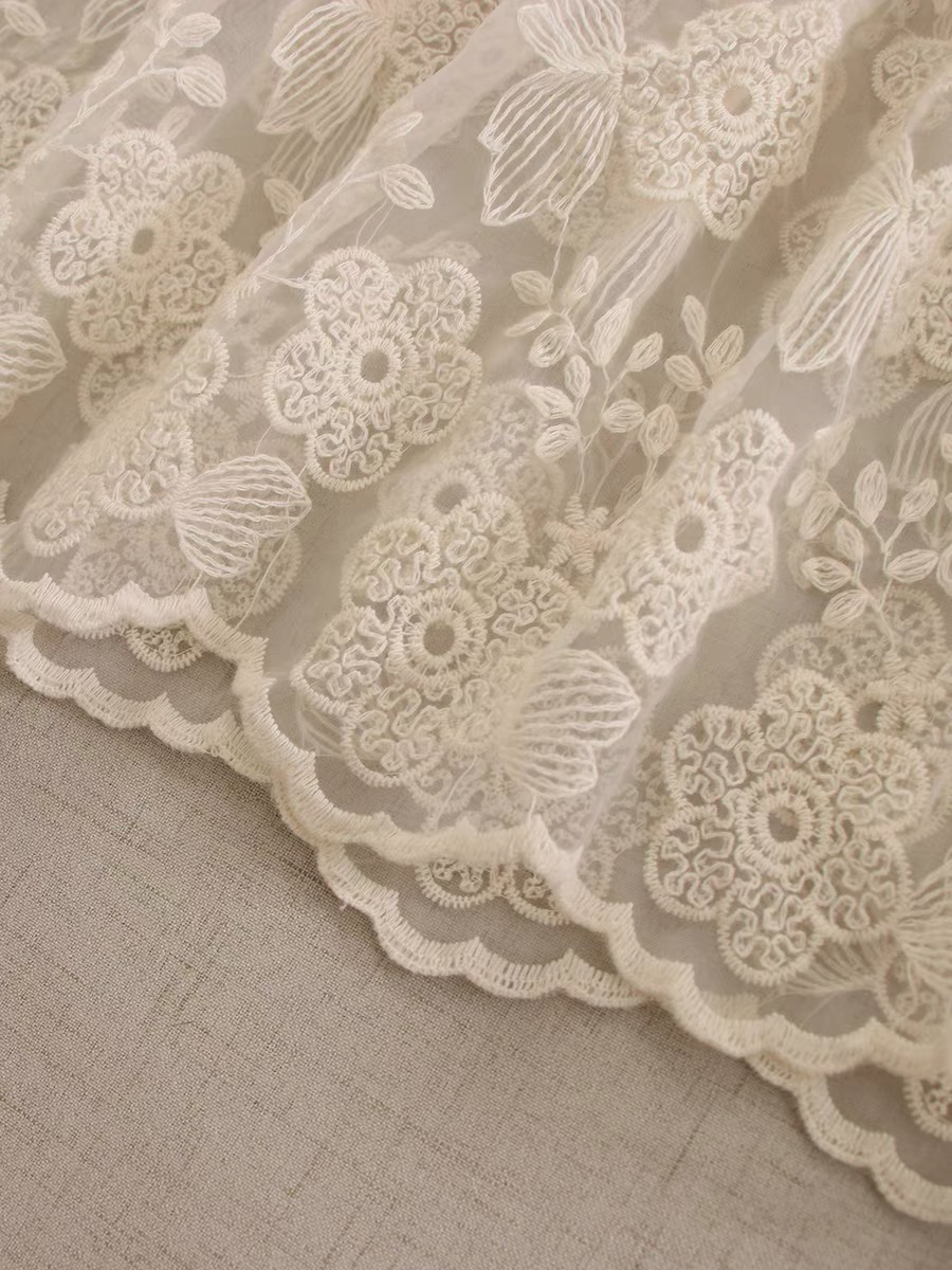 韩国森系蕾丝花边重工刺绣网纱半身裙松紧腰宽松叠穿清新甜美罩裙