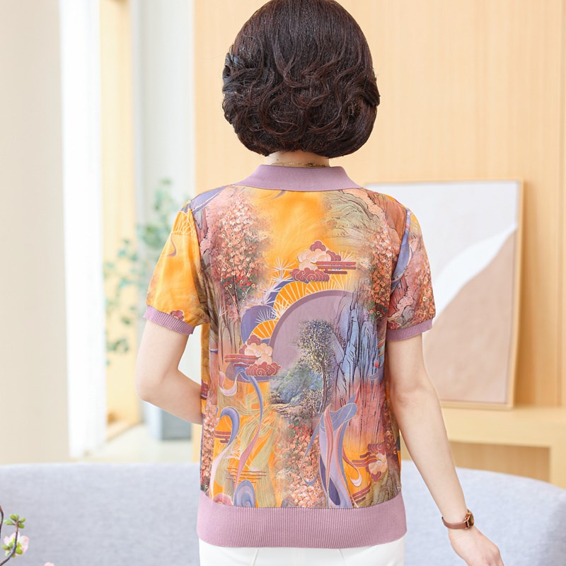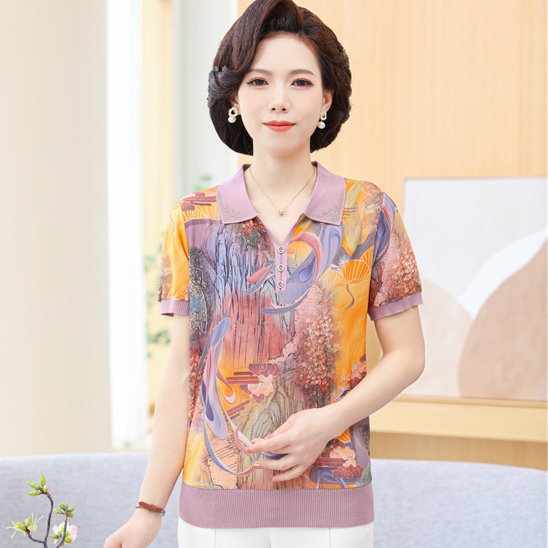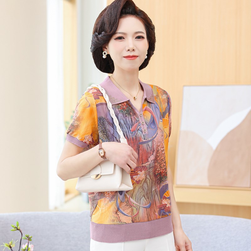 50岁中年妈妈装夏装新款短袖T恤薄 中老年女装上衣洋气夏款上衣服